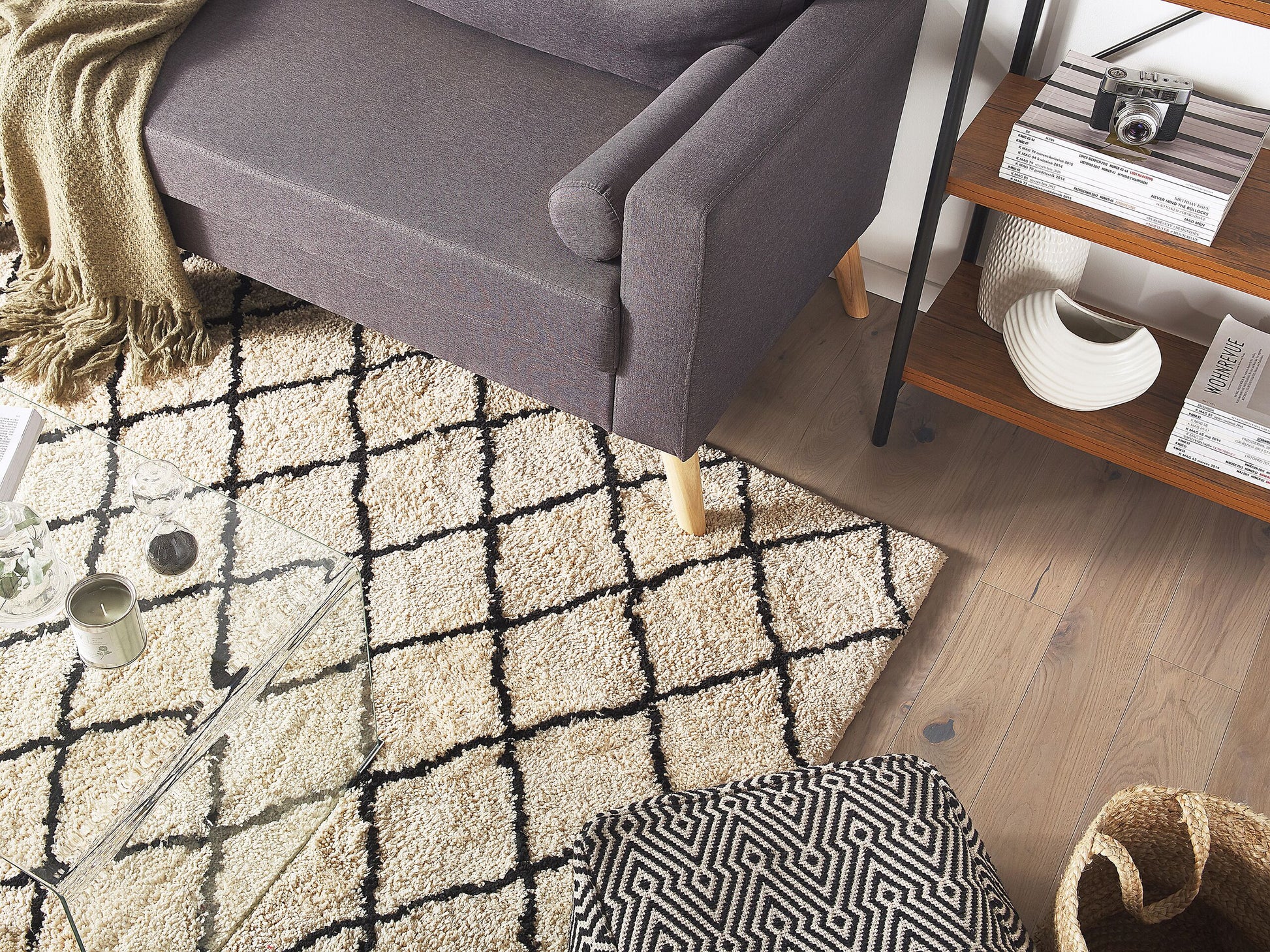 Teppich beige / schwarz 200 x 300 cm geometrisches Muster Kurzflor MIDYAT