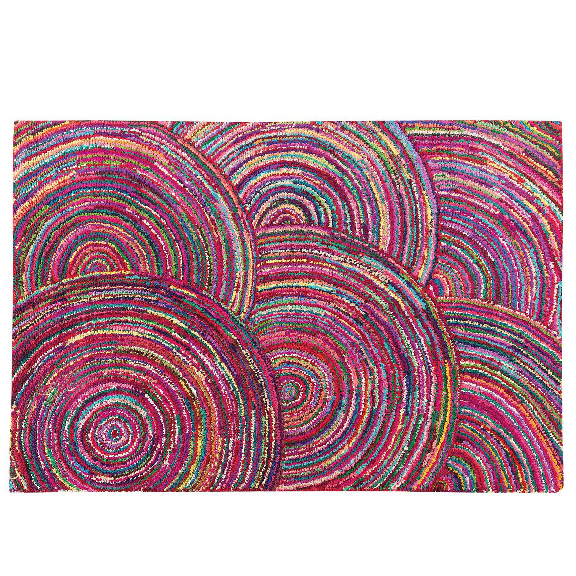 Description: Lassen Sie sich von der unbändigen Fröhlichkeit dieses Farbwunders anstecken. Der fantastische, bunte Läufer aus Baumwolle und Polyester wird Sie begeistern mit kräftigen, leuchtenden Farben. Der rechteckige, handgetuftete Hochflorteppich ist übersäht mit einem Muster aus grossen, runden Kreisen, die überlappend angeordnet sind. Jeder Kreis hat eine ganz individuelle Farbzusammenstellung. Material: Baumwolle. Zusätzliches Material: Polyester. Gewicht: 18 Montage: Benötigt keine Montage Das Angebot beinhaltet: 1 x Teppich zusätzliche Information: Der Artikel könnte Haare verlieren. Dies ist ein normaler Vorgang und stellt keinen Qualitätsmangel des Produkts dar., Da der Teppich handgewebt ist, können kleine Farb-, Muster-, bzw. Grössendifferenzen auftreten. Diese Unterschiede stellen jedoch keinen Produktfehler dar. Gestalten: Rechteckig Breite: 160 Länge: 230 Art: Teppich Stil: Boho Allgemeine Farbe: Bunt Schatten: Fuchsia Muster: Abstraktes Muster Hauptmaterial: Baumwolle Dichte: 4000