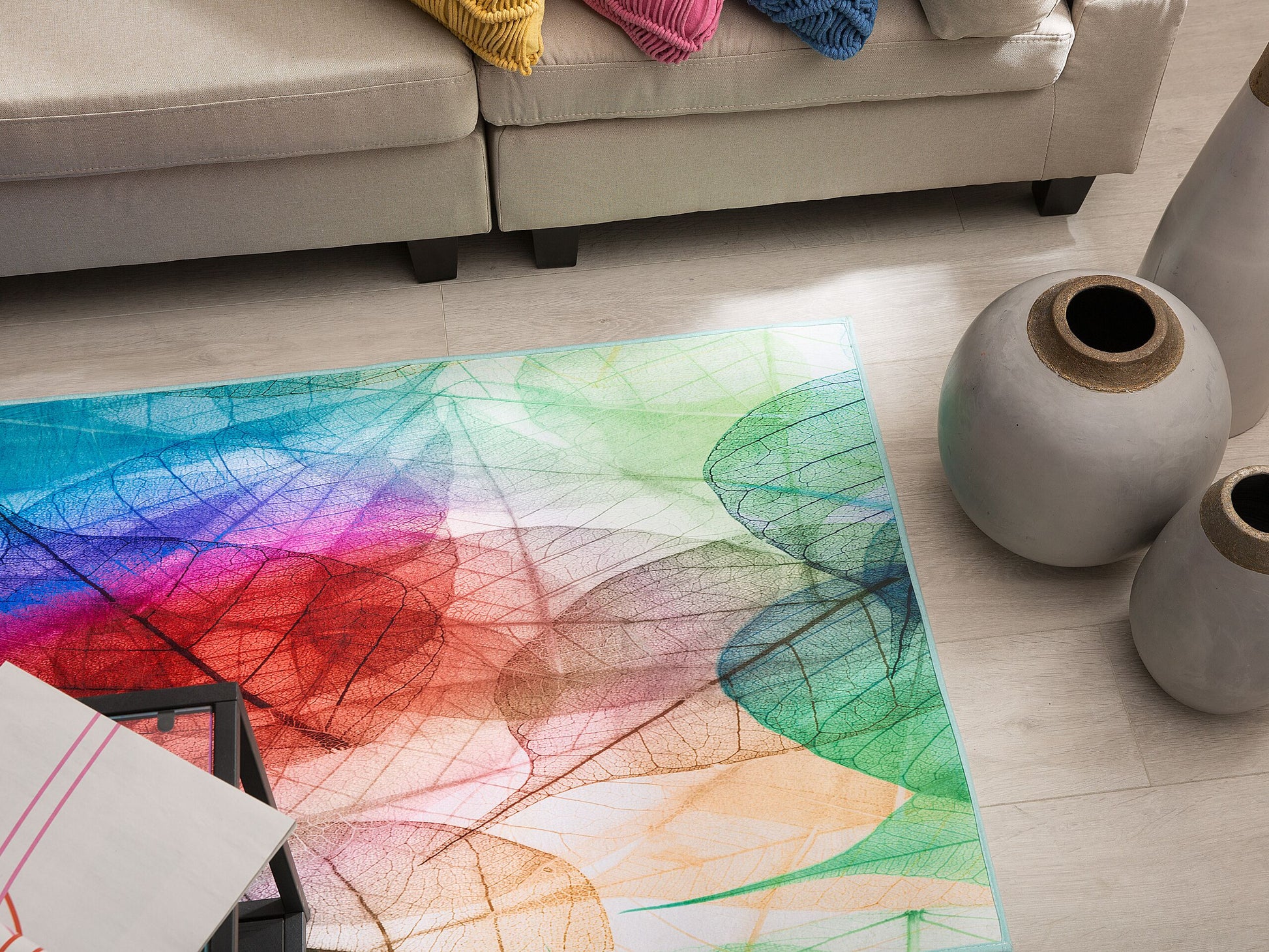 Dieser Teppich bildet den krönenden Abschluss eines schönen Fussbodens. Seine robuste und dennoch weiche Oberfläche aus Polyester-Filz ist sehr hochwertig und pflegeleicht. Dank der fröhlich bunten Blätter-Optik lässt er eine verspielte Atmosphäre entstehen und erhellt dabei jeden Innenraum. Material: Polyester. Material Zusammensetzung: 100% Polyester Gewicht: 1 Montage: Benötigt keine Montage Das Angebot beinhaltet: 1 x Teppich zusätzliche Information: Der Artikel könnte Haare verlieren. Dies ist ein normaler Vorgang und stellt keinen Qualitätsmangel des Produkts dar., Der Artikel benötigt einige Zeit, bis er seinen ursprünglichen Zustand erreicht hat – daher sollte er so schnell wie möglich ausgerollt werden und innerhalb von 72 Stunden seine vollständige Grösse wieder erreichen. Für einen optimalen Effekt sollte man die Teppichkanten mit schweren Gegenständen fixieren. Gestalten: Rechteckig Breite: 80 Länge: 150 Art: Teppich Stil: Modern Allgemeine Farbe: Rot Muster: Pflanzenmuster Hauptmaterial: Polyester Dichte: 500