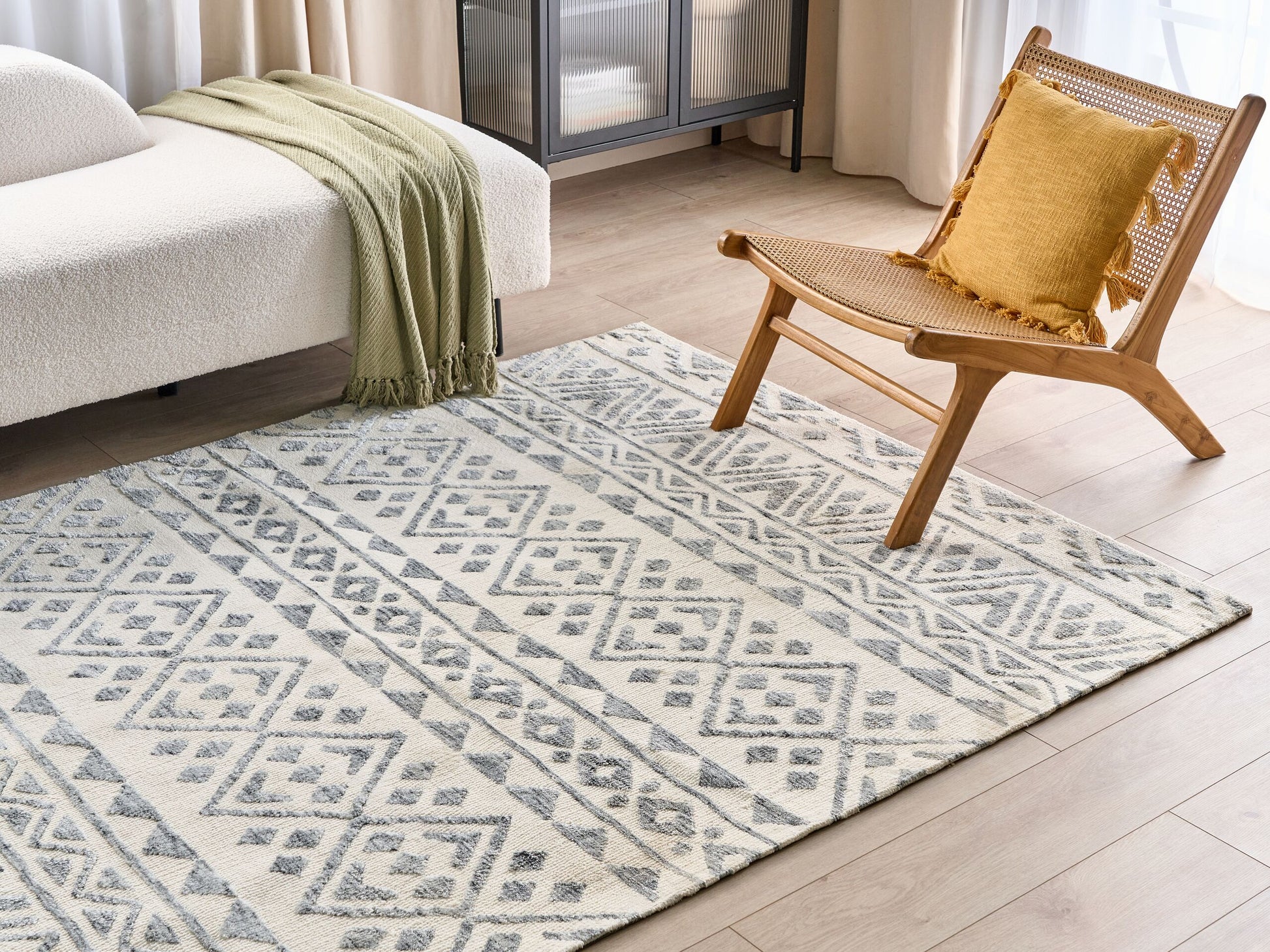 Teppich creme / grau 160 x 230 cm geometrisches Muster Kurzflor ASPANI