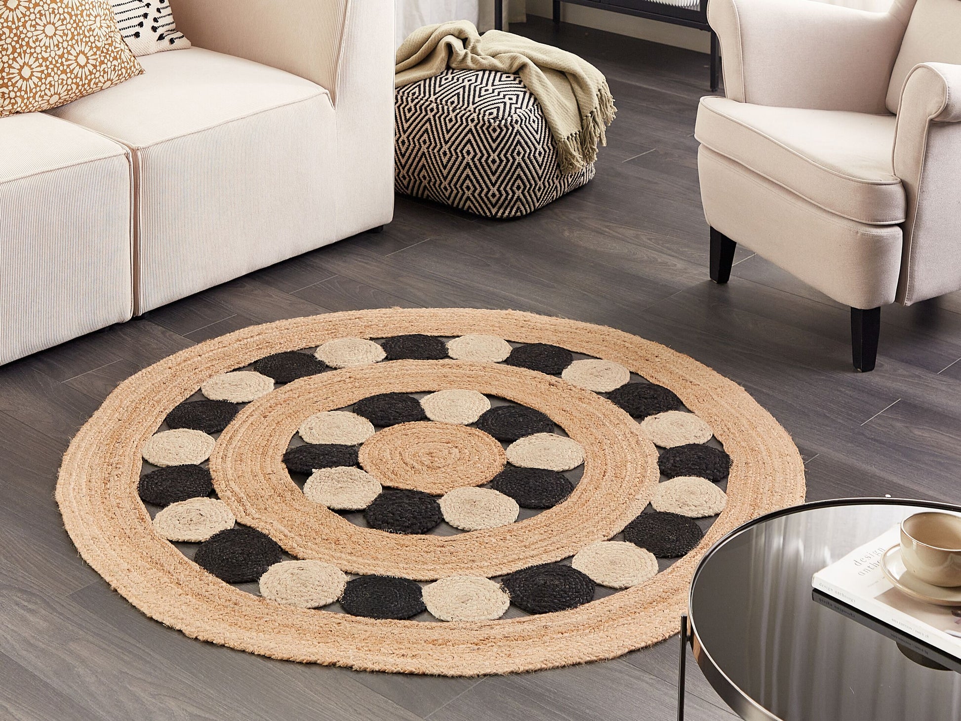 Teppich Jute beige / schwarz ⌀ 140 cm Kurzflor HOVIT