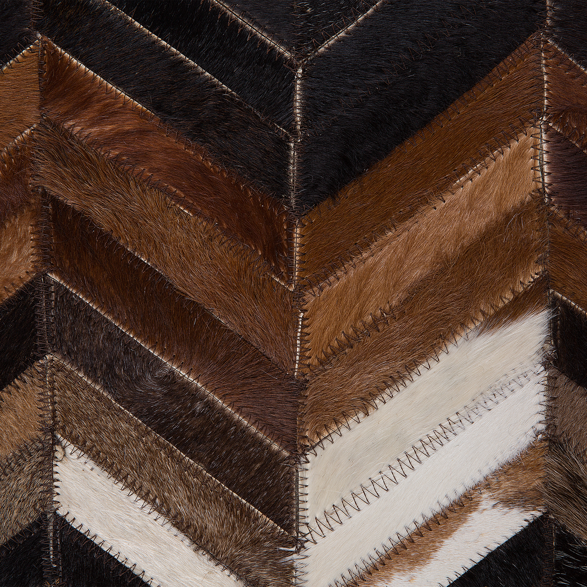 Dieser handgefertigte, rechteckige Lederteppich ist ein richtiges Allroundtalent. Die warmen, natürlichen Erdtöne wie helles Beige, gemütliches Hellbraun und robustes Dunkelbraun geben ihm seine behagliche, gemütliche Ausstrahlung, mit der er in allen rustikalen Wohnstilen mit viel Holz hervorragend zur Geltung kommt. Und auch in modernen, skandinavischen und gradlinigen Einrichtungen wird er als ausgefallenes, dynamisches Wohnaccessoire zu einem echten Hingucker. Das gezackte Muster des Lederteppichs ist aus schmalen, länglichen Streifen zusammengesetzt. Zudem verfügt er über eine schonende Unterseite aus Filz.  Material: Kuhfell. Material Zusammensetzung: 100% Echtleder Gewicht: 7 Montage: Benötigt keine Montage Das Angebot beinhaltet: 1 x Teppich zusätzliche Information: Der Artikel könnte Haare verlieren. Dies ist ein normaler Vorgang und stellt keinen Qualitätsmangel des Produkts dar., Da der Teppich handgewebt ist, können kleine Farb-, Muster-, bzw. Grössendifferenzen auftreten. Diese Unterschiede stellen jedoch keinen Produktfehler dar., Der Artikel benötigt einige Zeit, bis er seinen ursprünglichen Zustand erreicht hat – daher sollte er so schnell wie möglich ausgerollt werden und innerhalb von 72 Stunden seine vollständige Grösse wieder erreichen. Für einen optimalen Effekt sollte man die Teppichkanten mit schweren Gegenständen fixieren., Um die Qualität und Langlebigkeit des Materials zu erhalten, sollten Sie den Teppich nicht in stark beanspruchten Bereichen platzieren., Leder ist ein Naturprodukt. Es kann zu einer Faltenbildung kommen, die durch einen natürlichen Vorgang entsteht. Leder kann sich durch Nutzung ausdehnen und bildet sich nicht komplett zurück in den ursprünglichen Zustand. Farb- und Strukturunterschiede, Narben, Falten und sonstige Naturmerkmale sind Echtheitsbeweise und keine zur Reklamation berechtigende Fehler. Gestalten: Rechteckig Breite: 160 Länge: 230 Art: Teppich Stil: Boho Allgemeine Farbe: Bunt Schatten: Hellbeige Muster: ZickZack-Muster Hauptmaterial: Kuhfell Dichte: 2000