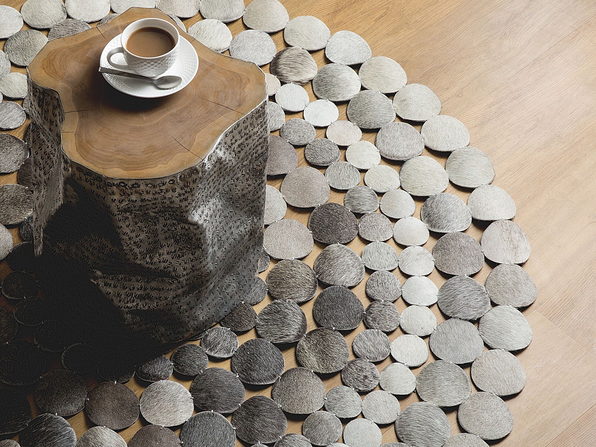 Teppich Kuhfell grau ⌀ 140 cm Patchwork Kurzflor HILVAN