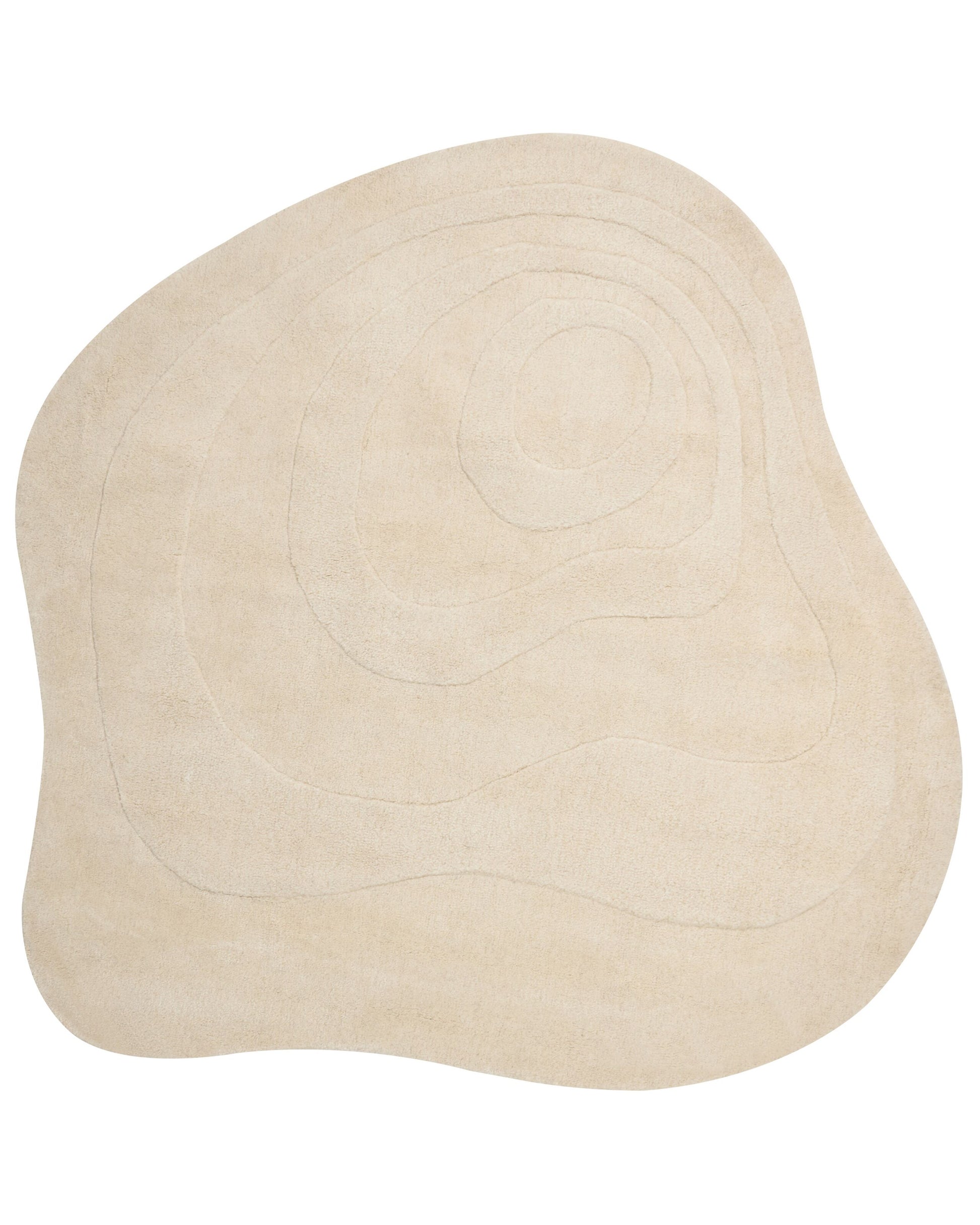 Dieser flauschige Vorleger eignet sich für alle Wohnräume, in denen Gemütlichkeit grossgeschrieben wird. Er ist mit Liebe zum Detail von Hand aus langlebigen Viskosefasern und natürlicher Wolle getuftet. Diesen vorteilhaften Materialien verdankt er nicht nur seine angenehme Haptik, sondern auch seinen schimmernden Look. Zudem ist er sowohl strapazierfähig als auch pflegeleicht und verfügt über eine schonende Unterseite aus Baumwoll- und Latexgemisch. Seine einzigartige, asymmetrische Sonderform wird durch eine aufwendige Prägung aufgewertet, die jedem Raum Tiefe und Dimension verleiht.   Material: Viskose. Zusätzliches Material: Wolle.  Material Zusammensetzung: 60% Viskose, 40% Wolle Gewicht: 8 Montage: Benötigt keine Montage Das Angebot beinhaltet: 1 x Teppich zusätzliche Information: Der Artikel benötigt einige Zeit, bis er seinen ursprünglichen Zustand erreicht hat – daher sollte er so schnell wie möglich ausgerollt werden und innerhalb von 72 Stunden seine vollständige Grösse wieder erreichen. Für einen optimalen Effekt sollte man die Teppichkanten mit schweren Gegenständen fixieren., Da jedes Produkt handgefertigt wird, kann es zu kleineren Abweichungen in der Farbe und der äusseren Struktur kommen. Diese Abweichungen stellen keinen Qualitätsmangel dar, sondern sind eine warentypische Eigenschaft., Herstellungstechnik: Beim Handtuftverfahren wird das Garn mit einer speziellen Nadel in das Trägermaterial des Teppichs eingestochen. Dabei wird das Garn nicht so fest in das Trägermaterial eingearbeitet wie bei anderen Methoden (z.B. Webteppiche). Daher können sich manchmal einzelne Fäden lösen., Bitte beachten Sie, dass Viskosefasern eine seidig glänzende Oberfläche haben, die je nach Faserrichtung und Lichtverhältnissen einen andere Farbschattierung annehmen kann. Gestalten: Unregelmässig Breite: 160 Länge: 160 Art: Teppich Stil: Klassisch Allgemeine Farbe: Beige Schatten: Hellbeige Muster: Ohne Muster Hauptmaterial: Viskose Dichte: 2600