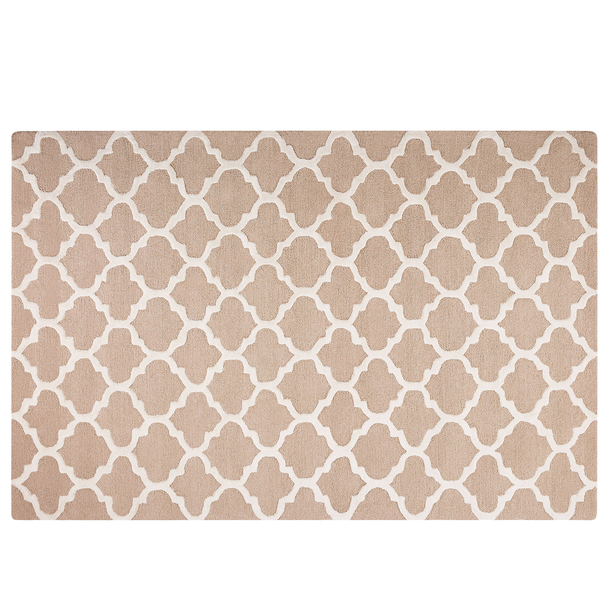 Teppich Wolle beige 160 x 230 cm marokkanisches Muster Kurzflor ERBAA