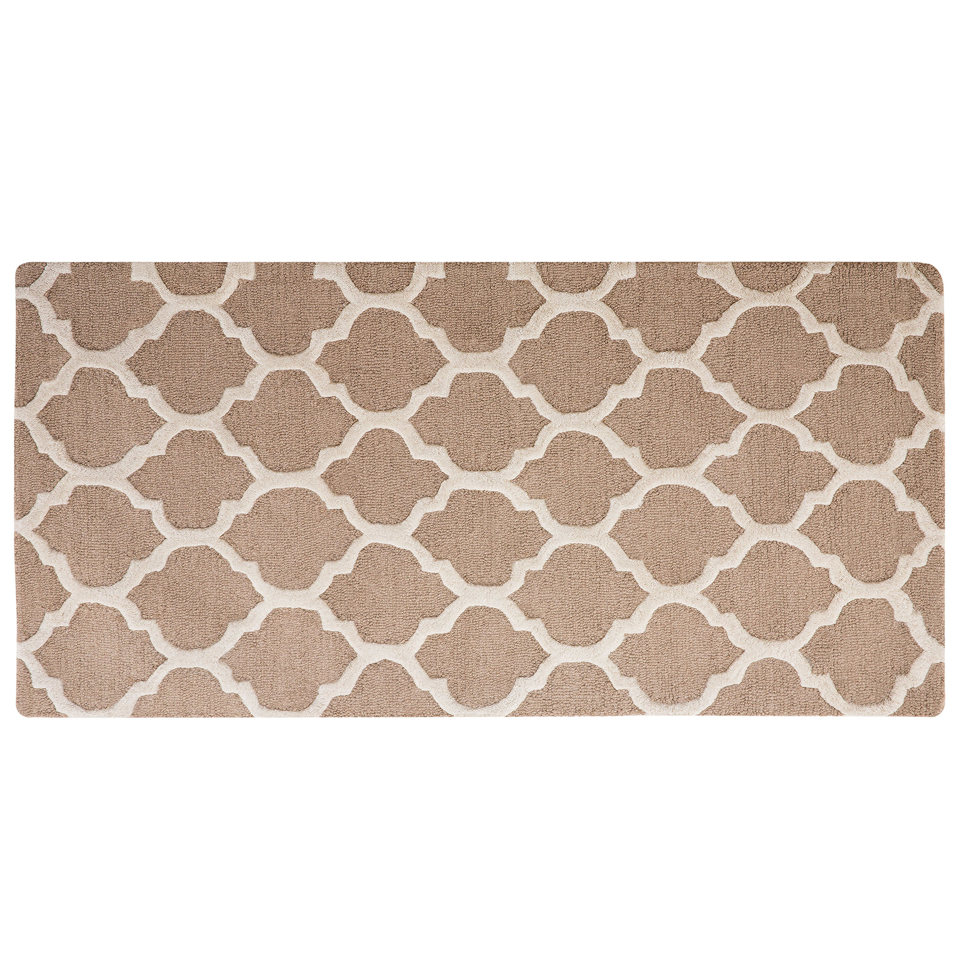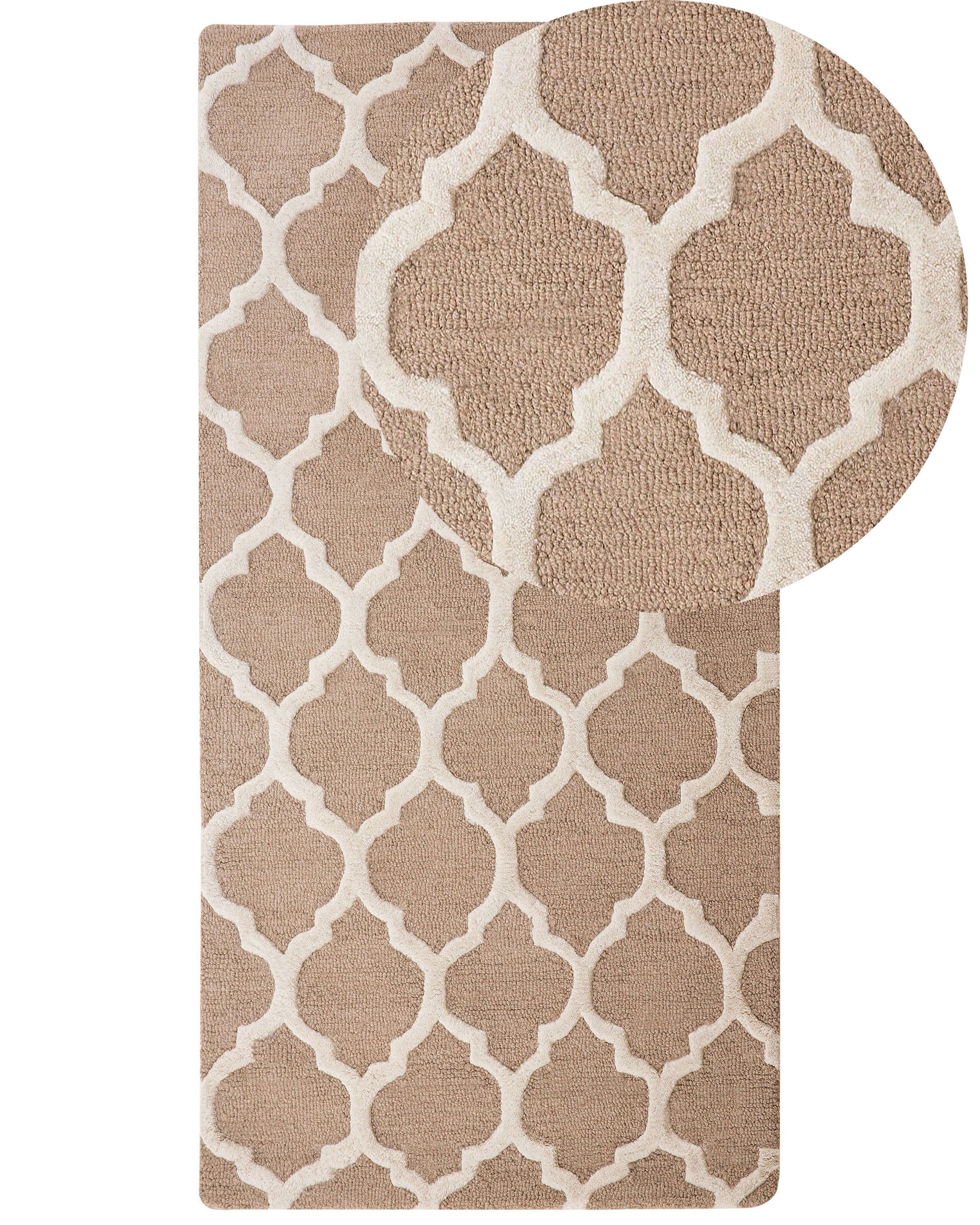 Teppich Wolle beige 80 x 150 cm marokkanisches Muster Kurzflor ERBAA