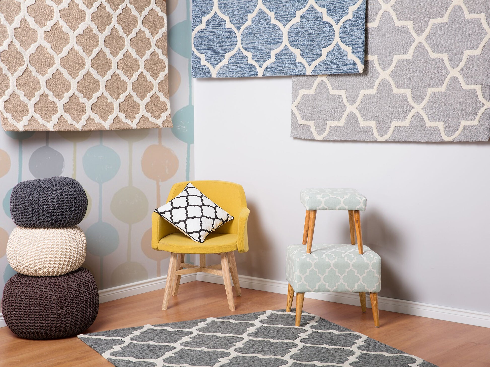 Der handgetuftete Kurzflorteppich strahlt jede Menge Behaglichkeit aus mit seinem klassischen Muster in wunderschönen, warmen Beigetönen. Das kuschelig weiche Schmuckstück aus Wolle und Baumwolle wird bestimmt wohlige Wärme sowie Gemütlichkeit in Ihr Heim bringen.   Material: Wolle. Material Zusammensetzung: 100% Wolle Gewicht: 3 Montage: Benötigt keine Montage Das Angebot beinhaltet: 1 x Teppich zusätzliche Information: Der Artikel könnte Haare verlieren. Dies ist ein normaler Vorgang und stellt keinen Qualitätsmangel des Produkts dar., Da der Teppich handgewebt ist, können kleine Farb-, Muster-, bzw. Grössendifferenzen auftreten. Diese Unterschiede stellen jedoch keinen Produktfehler dar., Der Artikel benötigt einige Zeit, bis er seinen ursprünglichen Zustand erreicht hat – daher sollte er so schnell wie möglich ausgerollt werden und innerhalb von 72 Stunden seine vollständige Grösse wieder erreichen. Für einen optimalen Effekt sollte man die Teppichkanten mit schweren Gegenständen fixieren. Gestalten: Rechteckig Breite: 80 Länge: 150 Art: Teppich Stil: Klassisch Allgemeine Farbe: Beige Schatten: Hellbeige Muster: Marokkanisches Muster Hauptmaterial: Wolle Dichte: 2800