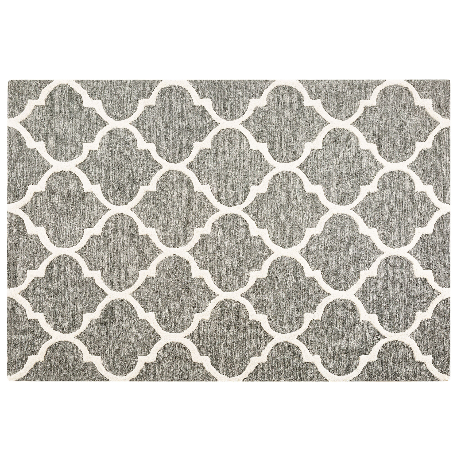 Teppich Wolle grau 140 x 200 cm marokkanisches Muster Kurzflor YALOVA