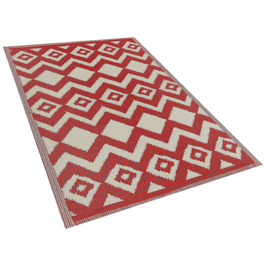Outdoor Teppich rot 120 x 180 cm ZickZack-Muster Kurzflor DEWAS