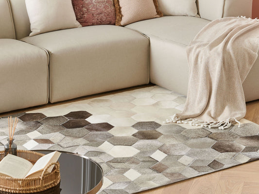 Teppich Kuhfell taupe 140 x 200 cm Patchwork Kurzflor PERVARI