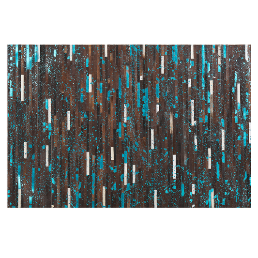 Teppich Kuhfell braun / blau 140 x 200 cm Patchwork Kurzflor KISIR