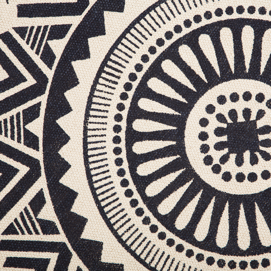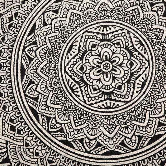 Teppich Baumwolle schwarz / creme ø 120 cm Mandala-Muster Kurzflor HIZAN