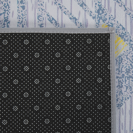Teppich grau-gelb 80 x 150 cm geometrisches Muster Kurzflor KARGI