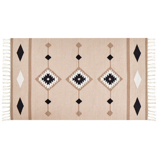 Kelim Teppich Baumwolle beige / schwarz 80 x 150 cm geometrisches Muster Kurzflor NIAVAN