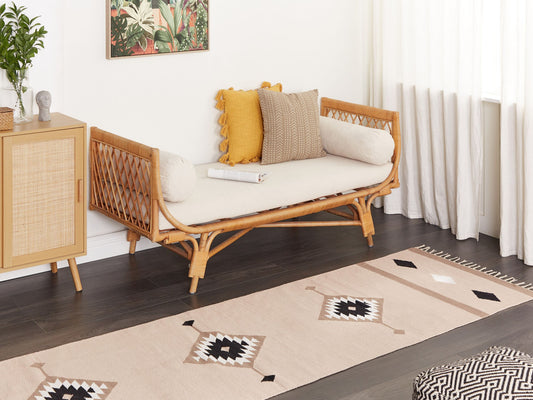 Kelim Teppich Baumwolle beige / schwarz 80 x 300 cm geometrisches Muster Kurzflor NIAVAN