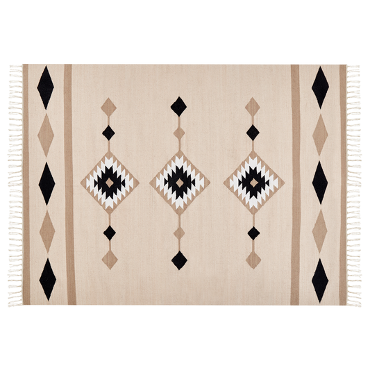Kelim Teppich Baumwolle beige / schwarz 160 x 230 cm geometrisches Muster Kurzflor NIAVAN