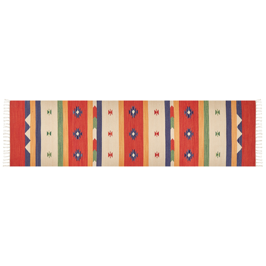 Kelim Teppich Baumwolle mehrfarbig 80 x 300 cm geometrisches Muster Kurzflor MARGARA