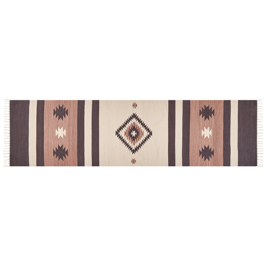 Kelim Teppich Baumwolle beige / braun 80 x 300 cm geometrisches Muster Kurzflor ARAGATS