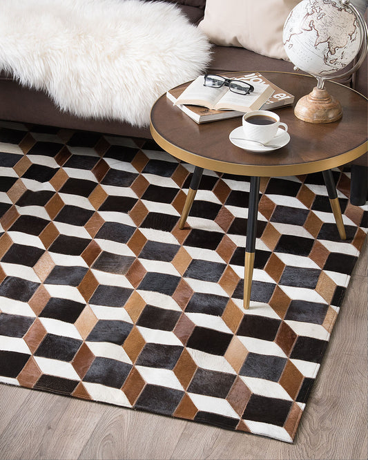 Teppich Kuhfell braun 160 x 230 cm Patchwork Kurzflor ALPKOY