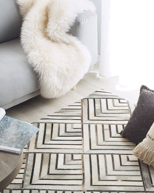Teppich Kuhfell beige-grau 160 x 230 cm geometrisches Muster Kurzflor TEKIR