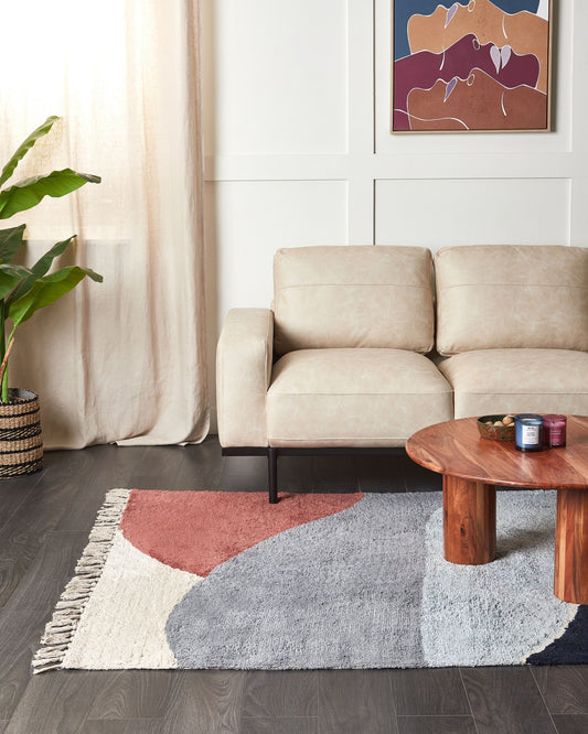 Teppich Baumwolle mehrfarbig / blau 140 x 200 cm abstraktes Muster Kurzflor XINALI