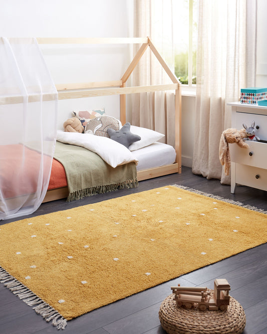 Teppich Baumwolle gelb 140 x 200 cm gepunktetes Muster Kurzflor ASTAF