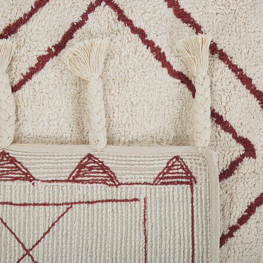 Teppich Baumwolle weiss / rot 80 x 150 cm Kurzflor KENITRA