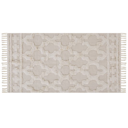 Teppich Baumwolle beige 80 x 150 cm marokkanisches Muster Fransen SULUOVA