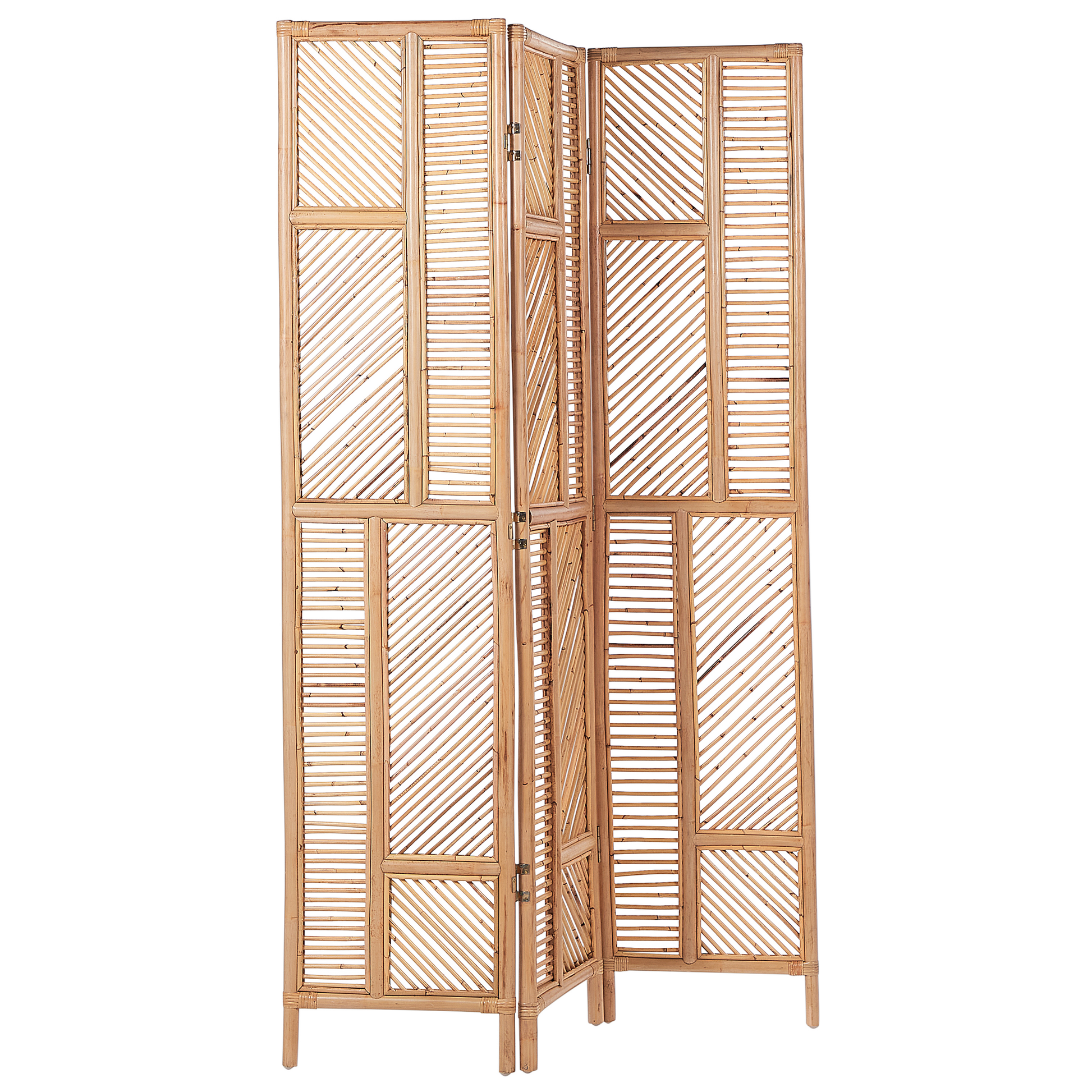 Description: Verschönern Sie Ihren Wohnraum mit diesem dreiteiligen Raumtrenner. Dieses klappbare Wohnaccessoire spart nicht nur Platz, sondern ist auch ein Eyecatcher für Ihr Zuhause. Der Raumteiler fungiert als bewegliche Wand und ermöglicht es Ihnen, ein Zimmer im Handumdrehen zu verwandeln. Hergestellt aus Rattan in einem hellen Farbton mit dekorativem Muster, ist er eine moderne Ergänzung, die perfekt zum Boho-, minimalistischen oder Japandi-Stil passt. Material: Rattan. Gewicht: 10 Montage: Benötigt keine Montage Holzart: Calamus Holzursprung: Indonesien Das Angebot beinhaltet: 1x Paravent Höhe: 180 Breite: 117 Tiefe: 3 Art: Raumteiler 3-teilig Stil: Boho Allgemeine Farbe: Naturfarben Hauptmaterial: Rattan