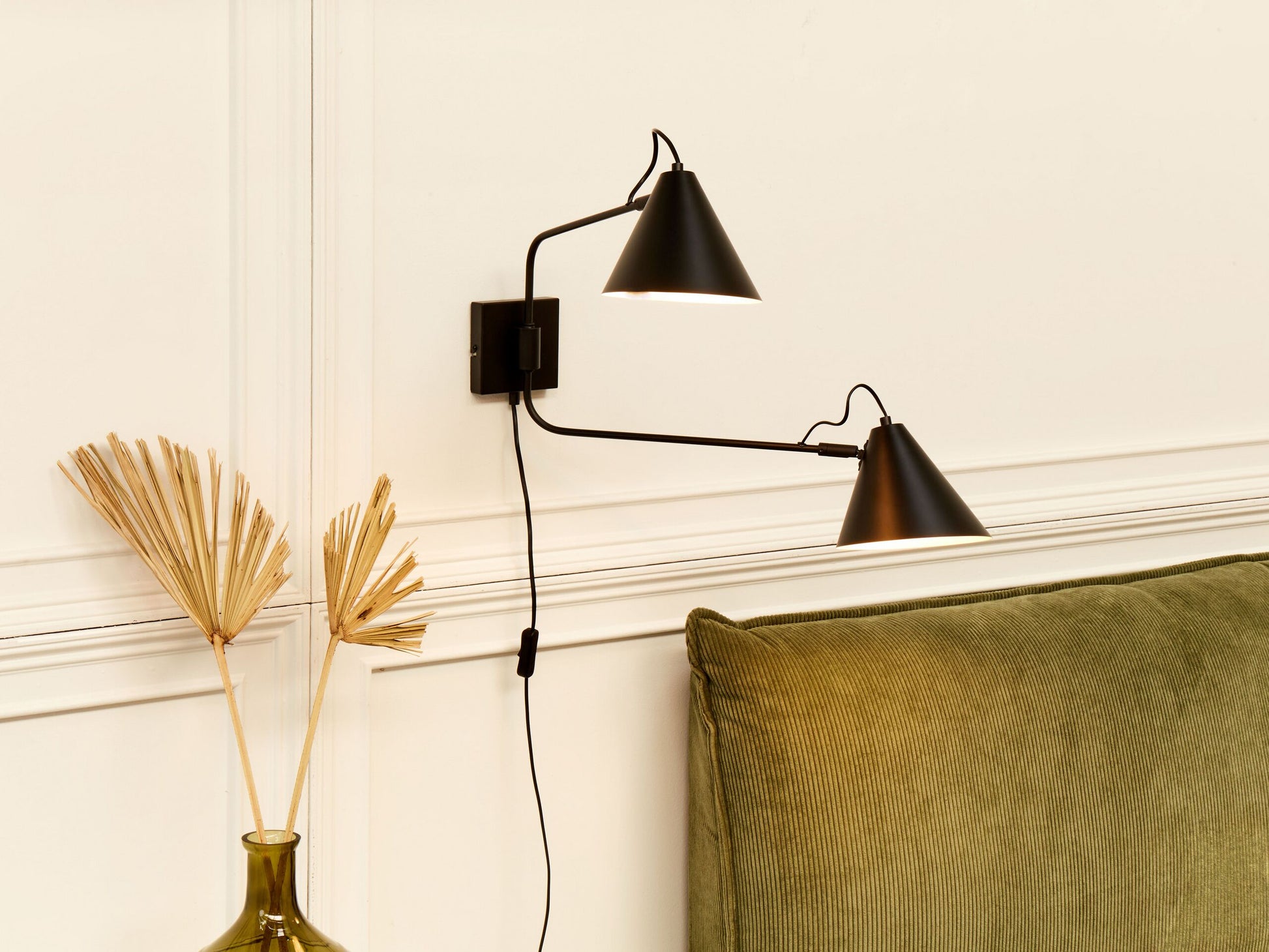 Wandleuchte Metall schwarz 2-flammig Kegelform verstellbar MANDIRI