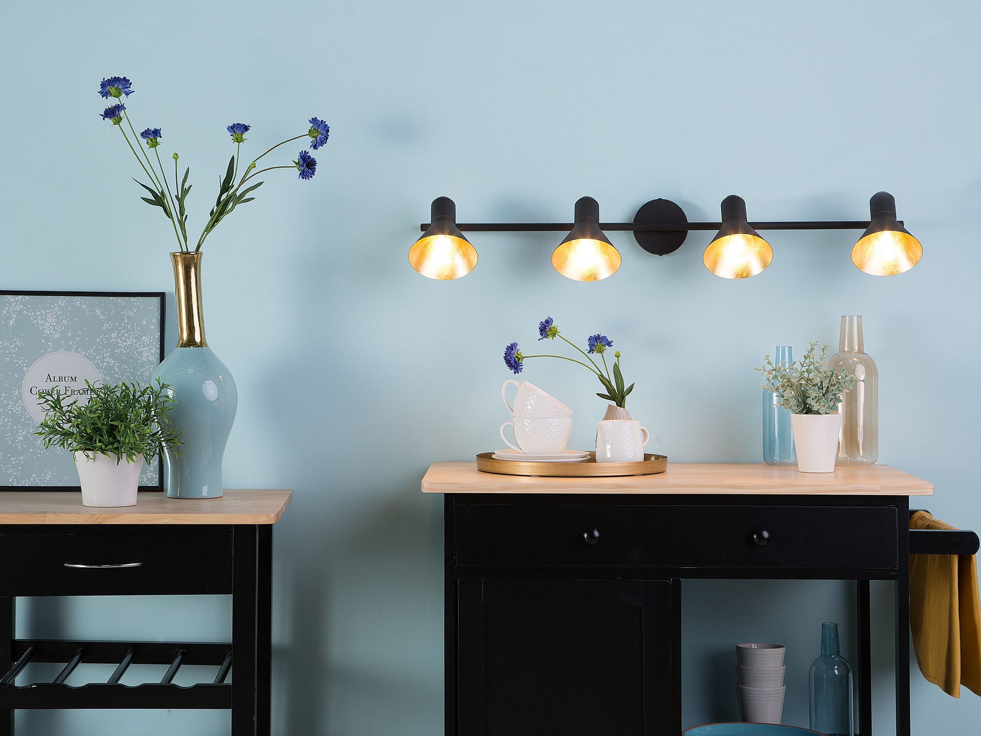 Wandleuchte schwarz / gold 4-flammig Kegelform MERSEY IV