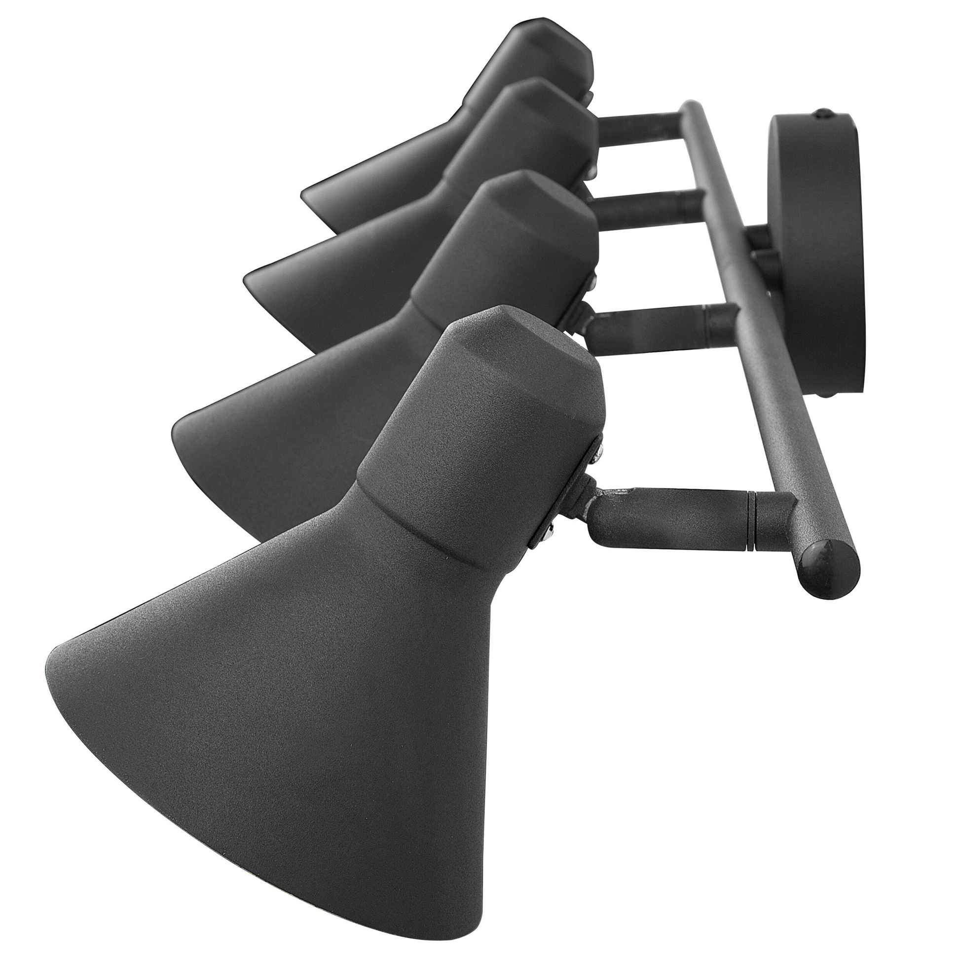 Eine vierflammige Wand- oder Deckenleuchte mit Metallhalterung und flexiblem Schirm, ideal zum Lesen oder zur zusätzlichen Beleuchtung eines Zimmers. Diese Lampe lässt sich perfekt mit industriellen oder modernen Inneneinrichtungen kombinieren. Dank der Kegelform des Lampenschirms breitet sich das Licht in einem grösseren Winkel aus, wodurch mehr Licht in Ihr Zuhause gebracht wird. Material: Stahl. Gewicht: 1 Montage: Installation benötigt Das Angebot beinhaltet: Nicht im Lieferumfang enthalten: Leuchtmittel, 1 x Wandlampe Höhe: 12 zusätzliche Information: Diese Leuchte ist geeignet für Leuchtmittel der Energieklassen A bis G auf einer Skala von A (sehr effizient) bis G (weniger effizient). Geeignet für: LED Leuchtmittel, Eco-Halogen Leuchtmittel, Energiesparleuchtmittel., Die Lampe besitzt keinen eigenen Ein/Ausschalter und benötigt daher einen separaten Schalter an der Wand, Jeder Artikel ist ein handgefertigtes Unikat; Farbschattierung und Muster können daher vom Foto abweichen. Breite: 79 Tiefe: 12 Art: Wandlampen Stil: Modern Allgemeine Farbe: Schwarz Hauptmaterial: Stahl Fassung: Max. 25 W IP Protection Code: IP 20
