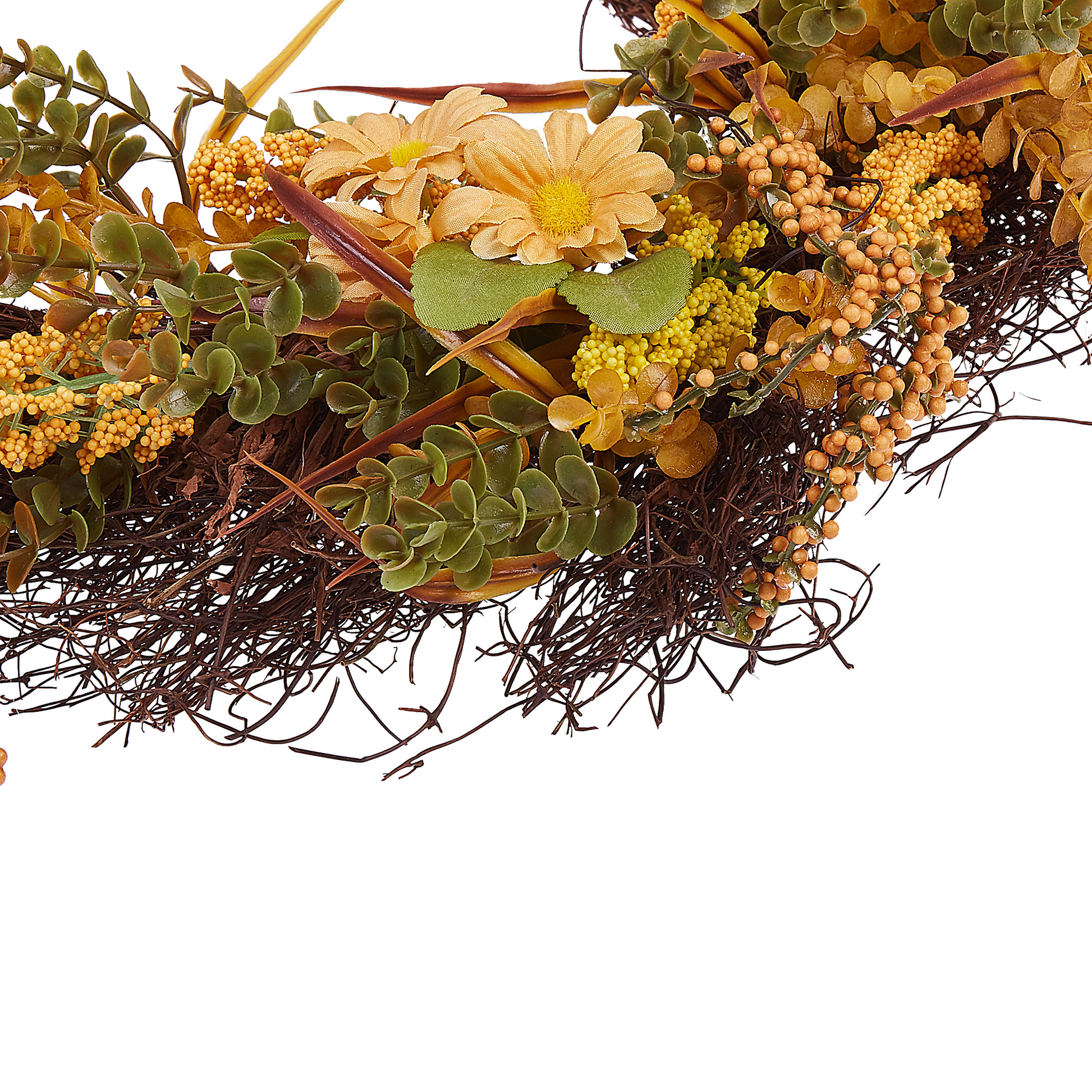 Bringen Sie Sommer- und Frühlingsstimmung in die eigenen 4 Wände. Die Kunststoffblumen werden liebevoll von Hand mit dem runden Rahmen aus Holz verbunden. Auf diese Weise entsteht ein einzigartiges Arrangement, das bei keinem weiteren Kranz zu finden ist. Da der Blumenkranz aus künstlichen Wiesenblumen hergestellt wird, ist das Modell sowohl pflegeleicht als auch sehr langlebig und kann im Innen- oder überdachten Aussenbereich eingesetzt werden. So eignet er sich hervorragend für Hochzeiten, Wände, Türen, Tischflächen usw. Material: Polyester. Zusätzliches Material: Eisen, Kunststoff. Gewicht: 1 Montage: Benötigt keine Montage Das Angebot beinhaltet: 1 x Dekoration Höhe: 10 zusätzliche Information: Da jedes Produkt handgefertigt wird, kann es zu kleineren Abweichungen in der Farbe und der äusseren Struktur kommen. Diese Abweichungen stellen keinen Qualitätsmangel dar, sondern sind eine warentypische Eigenschaft. Gestalten: Rund Breite: 50 Tiefe: 50 Art: Dekokranz Stil: Klassisch Allgemeine Farbe: Grün Hauptmaterial: Polyester Orientierung: Horizontal