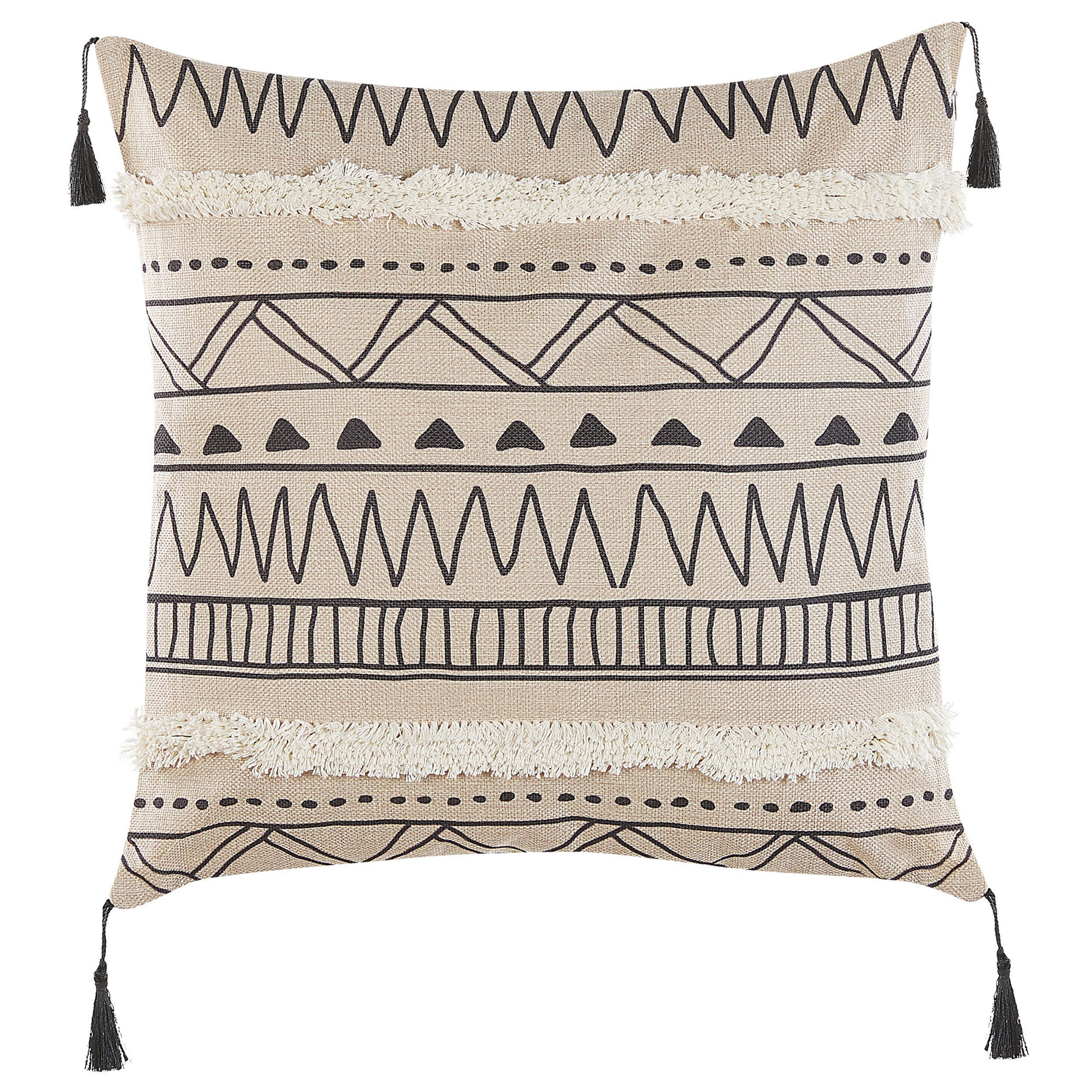 Bringen Sie mit diesem Kissenset den Boho-Style in Ihr Zuhause. Beide Bezüge sind mit dekorativen Quasten auf der Vorderseite und an den Ecken versehen, die mit Sicherheit alle Blicke auf sich ziehen werden. Die geometrischen Muster der Kissen machen sie ebenso zu wahren Eyecatchern in jedem Wohnraum. Zudem sind sie aus Polyester gefertigt, welches pflegeleicht und langlebig ist. Material: Polyester. Material Zusammensetzung: 100% Polyester Montage: Benötigt keine Montage Das Angebot beinhaltet: 2 x Zierkissen Höhe: 7 zusätzliche Information: Das Kissen ist vakuumverpackt. Nehmen Sie Ihr Kissen aus der Verpackung heraus und lassen Sie es 24 Stunden lang liegen, bis es seine volle Dichte erreicht. Gestalten: Quadratisch Breite: 45 Tiefe: 45 Art: Kissen 2er Set Stil: Boho Allgemeine Farbe: Beige Muster: Geometrisches Muster Hauptmaterial: Polyester Füllmaterial: Polyester