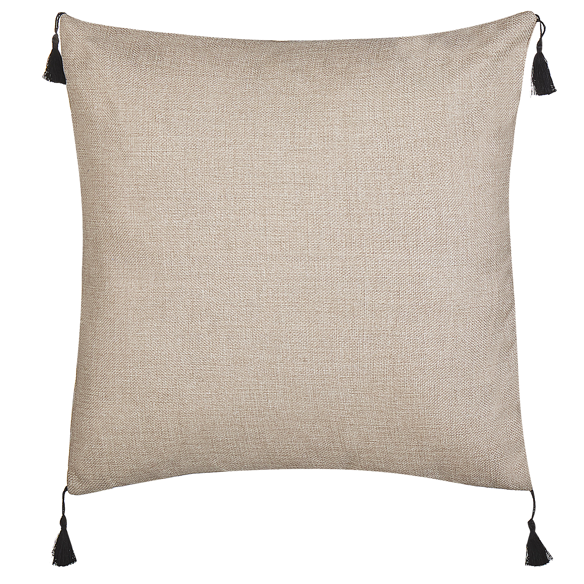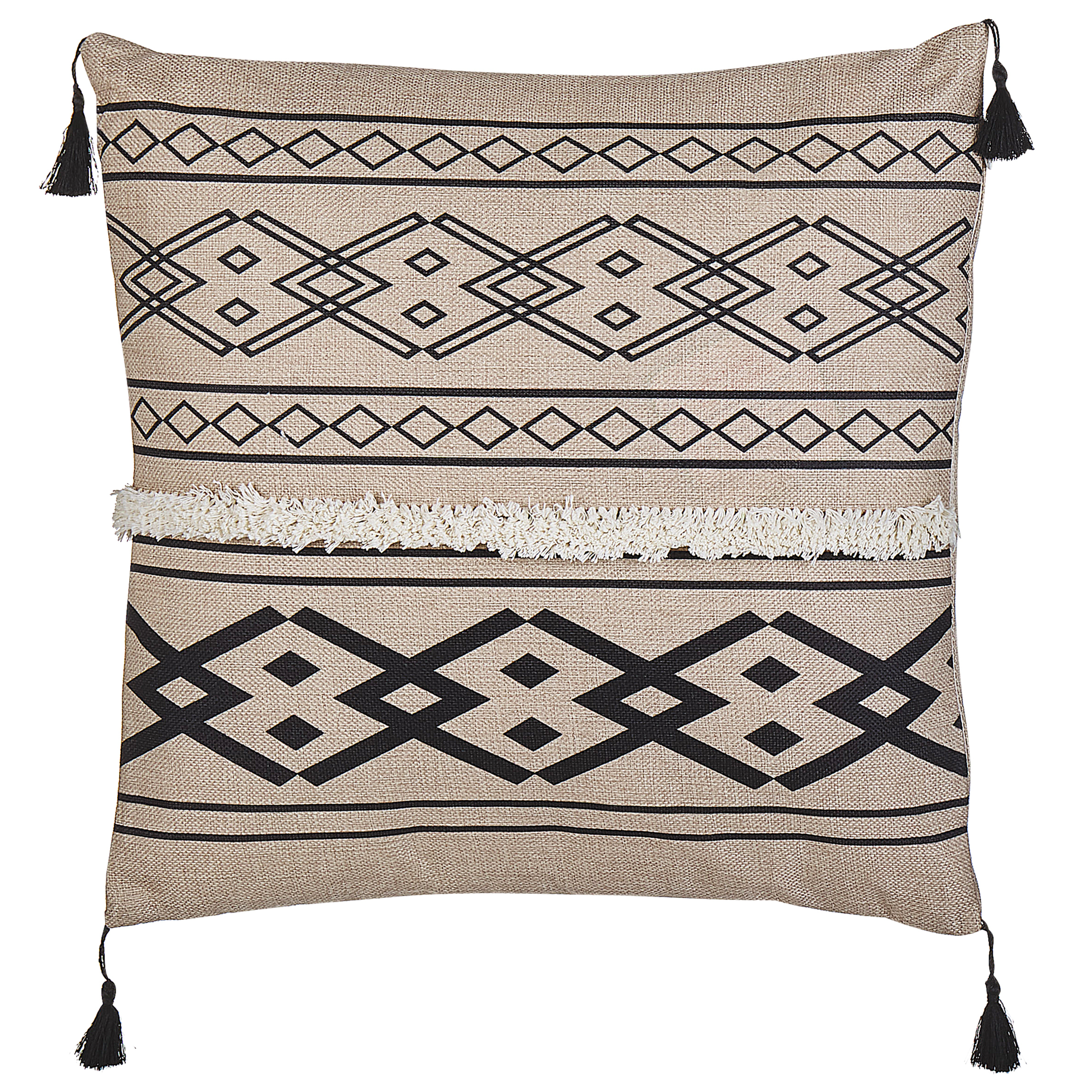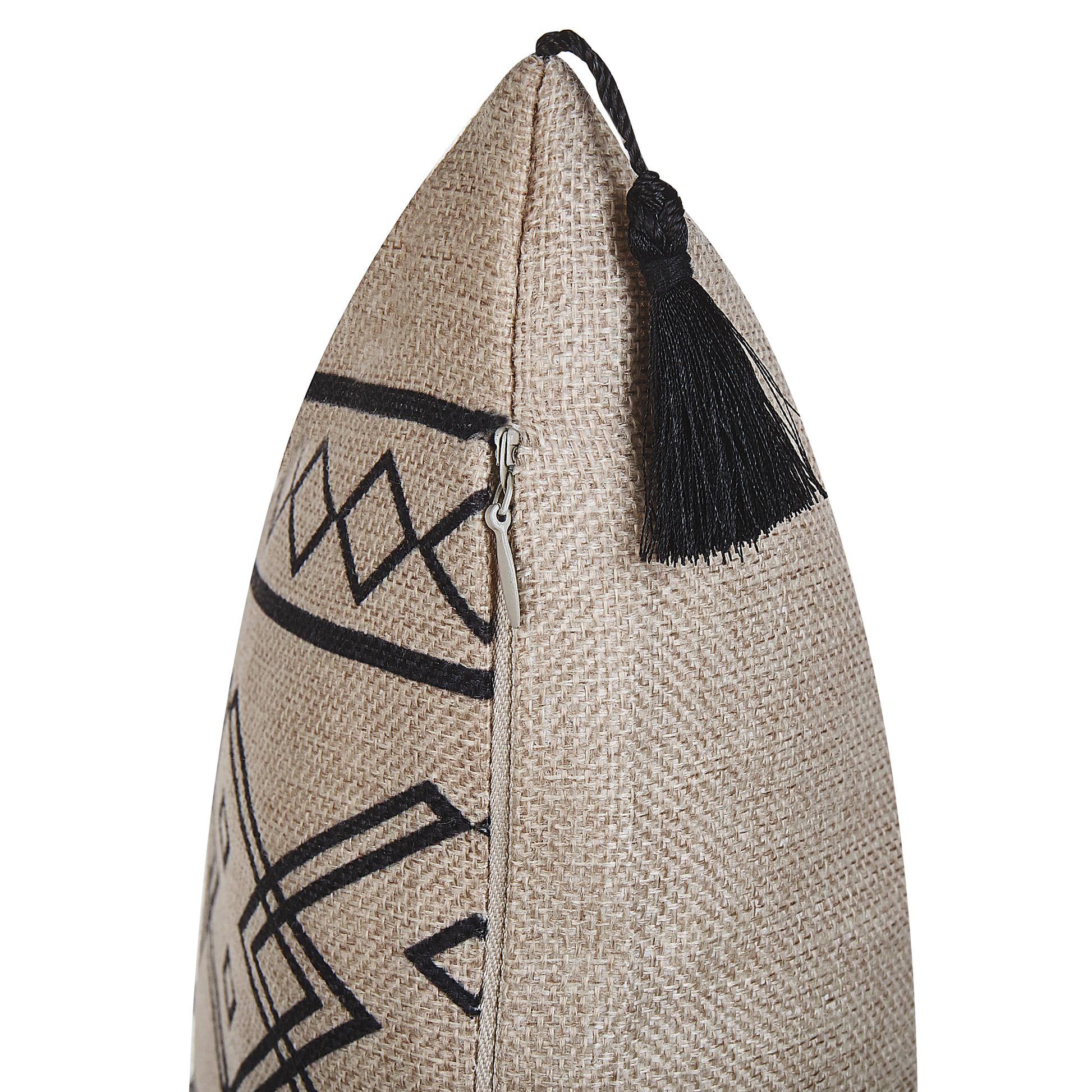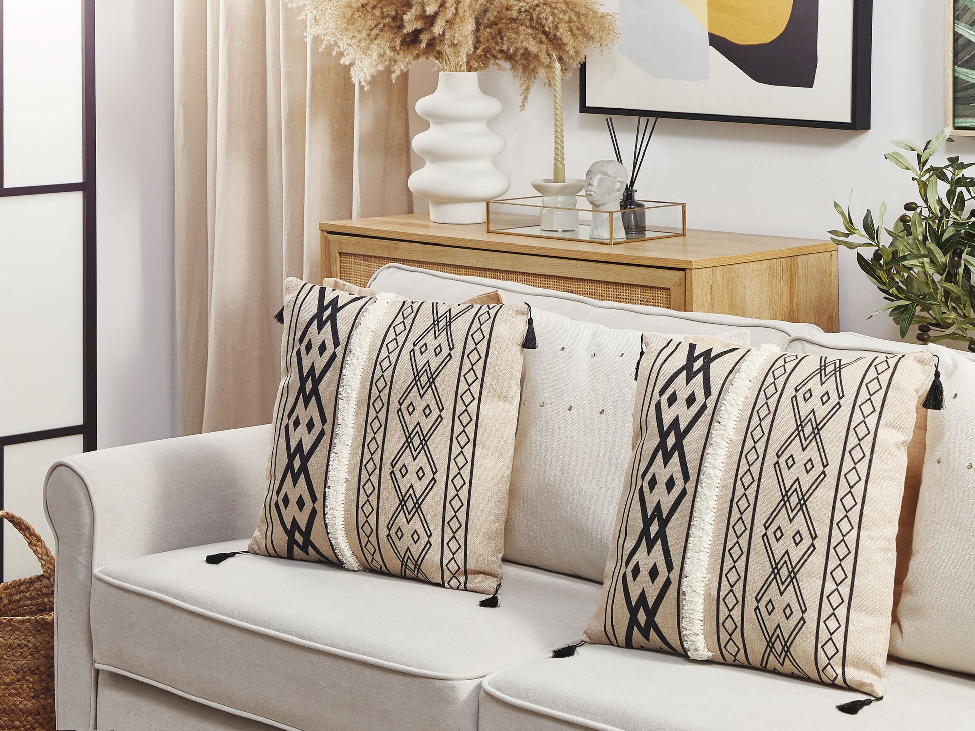 Dekokissen geometrisches Muster mit Fransen beige / schwarz 45 x 45 cm 2er Set PULMONARIA