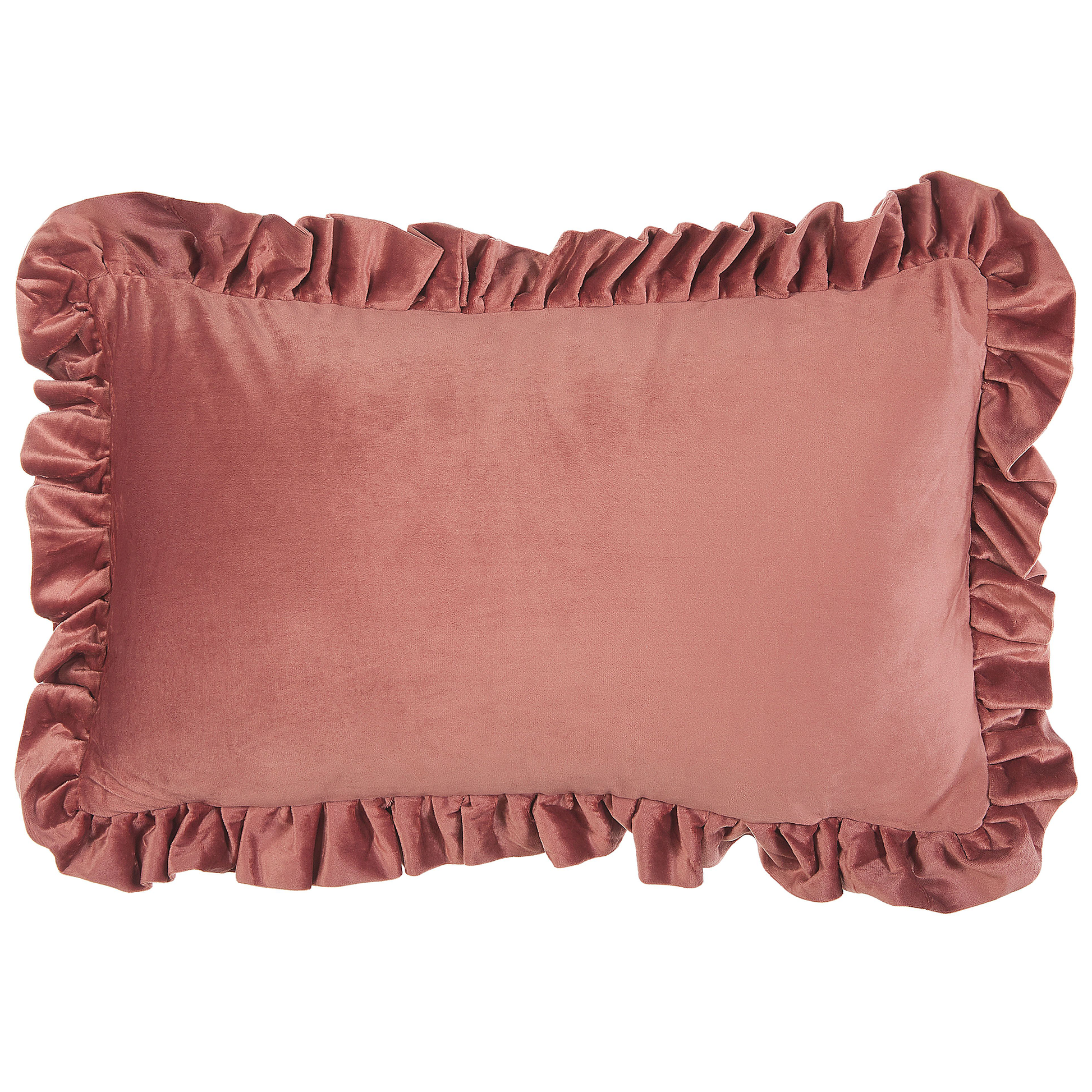 Bringen Sie mit diesem wunderschönen Kissenset einen Hauch von Vintage-Glamour in Ihren Wohnraum. Die Bezüge sind aus seidig weichem Polyester-Samt gefertigt, der das Rosa besonders gut zur Geltung bringt. Die Hüllen sind mit Rüschen verziert, die vom Retro-Stil inspiriert sind. Ausserdem verfügen sie über einen Reissverschluss, der die Reinigung erleichtert. Mit flauschigem Polyester gefüllt, bieten die Kissen einen hohen Komfort. Material: Samtstoff. Material Zusammensetzung: 100% Polyester Montage: Benötigt keine Montage Das Angebot beinhaltet: 2 x Zierkissen Höhe: 7 zusätzliche Information: Das Kissen ist vakuumverpackt. Nehmen Sie Ihr Kissen aus der Verpackung heraus und lassen Sie es 24 Stunden lang liegen, bis es seine volle Dichte erreicht., Bitte beachten Sie, dass Samtstoff unter verschiedenen Lichtverhältnissen eine andere Optik haben kann – das Material schimmert bei Tageslicht stärker und wirkt bei künstlicher Beleuchtung in Innenräumen eher gedämpft. Aufgrund der glatten, hochdichten Struktur des Gewebes kann sein Farbton auch variieren, wenn man mit der Hand in verschiedene Richtungen und Winkel über den Stoff fährt. Um den Farbton auszugleichen und Druckstellen zu vermeiden, sollte der Webstoff sanft mit einer offenen Handfläche in eine Richtung gestrichen, mit einem feuchten Tuch abgewischt oder einem Dampfbügeleisen gebügelt werden. Gestalten: Rechteckig Breite: 30 Tiefe: 50 Art: Dekokissen 2er Set Stil: Glamourös Allgemeine Farbe: Rosa Muster: Ohne Muster Hauptmaterial: Samtstoff Füllmaterial: Polyester