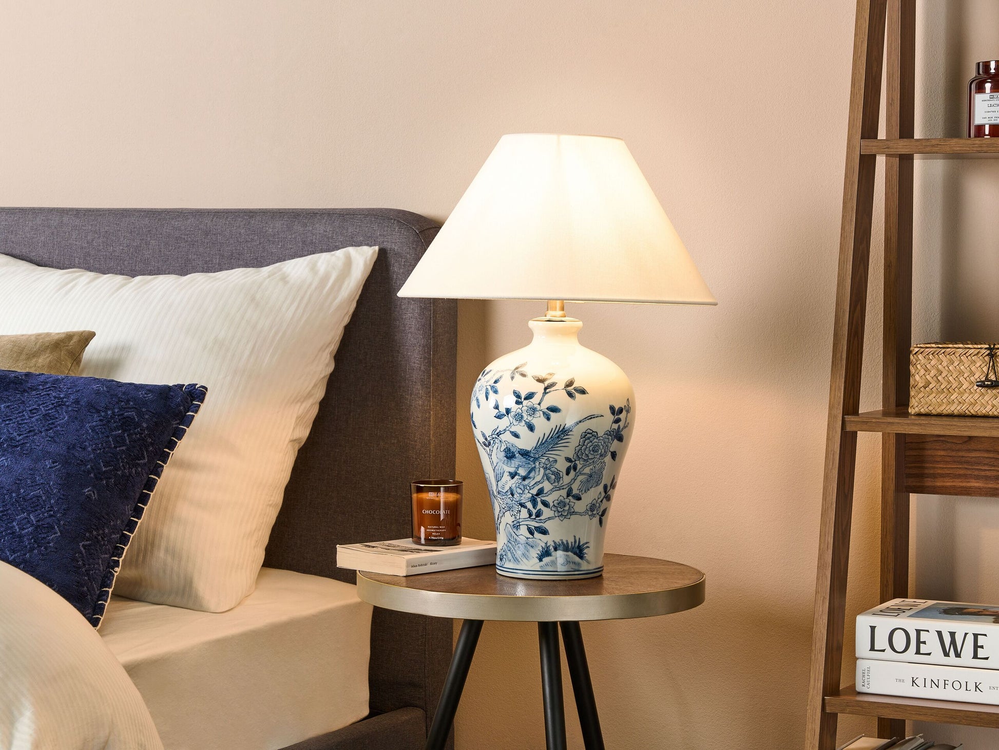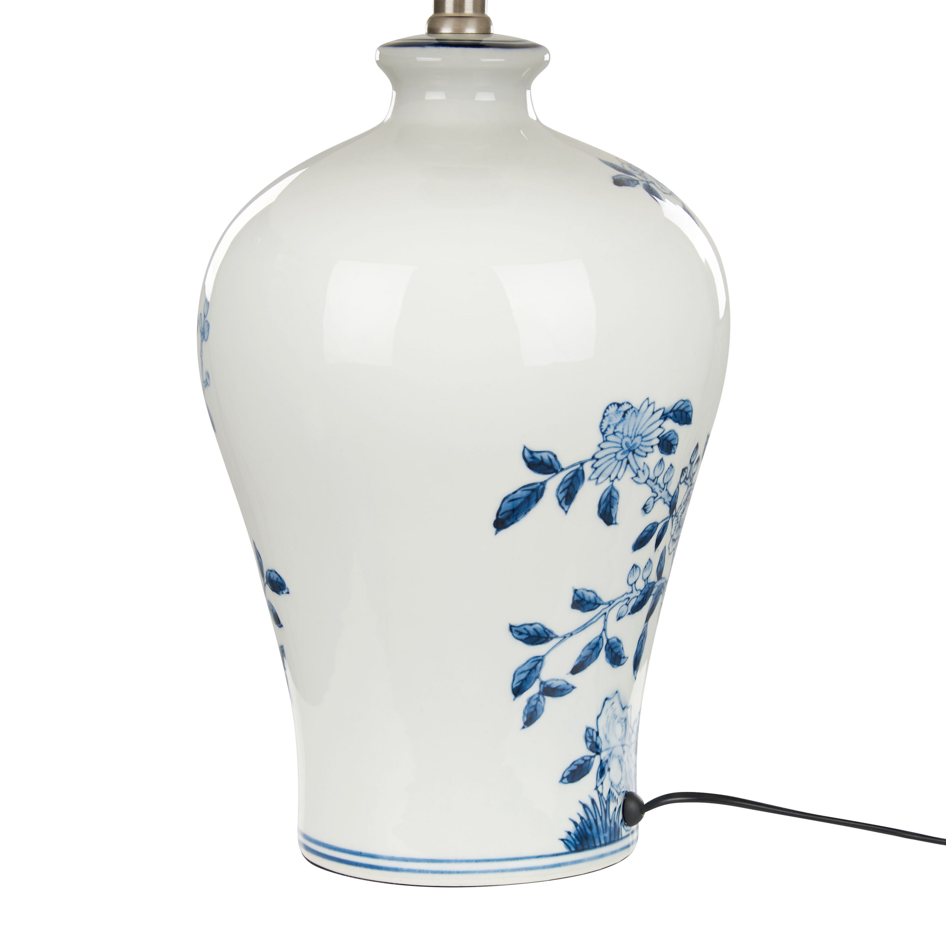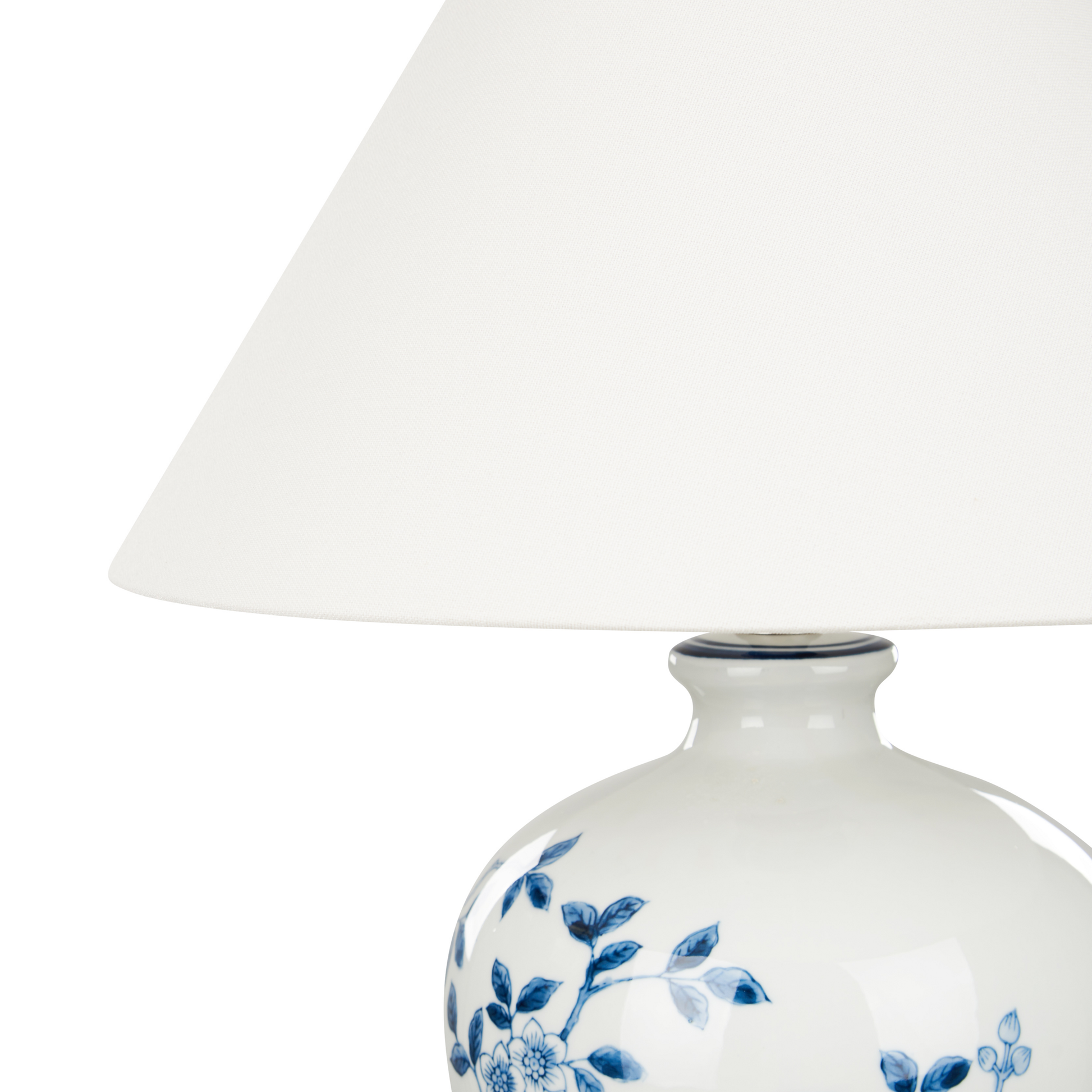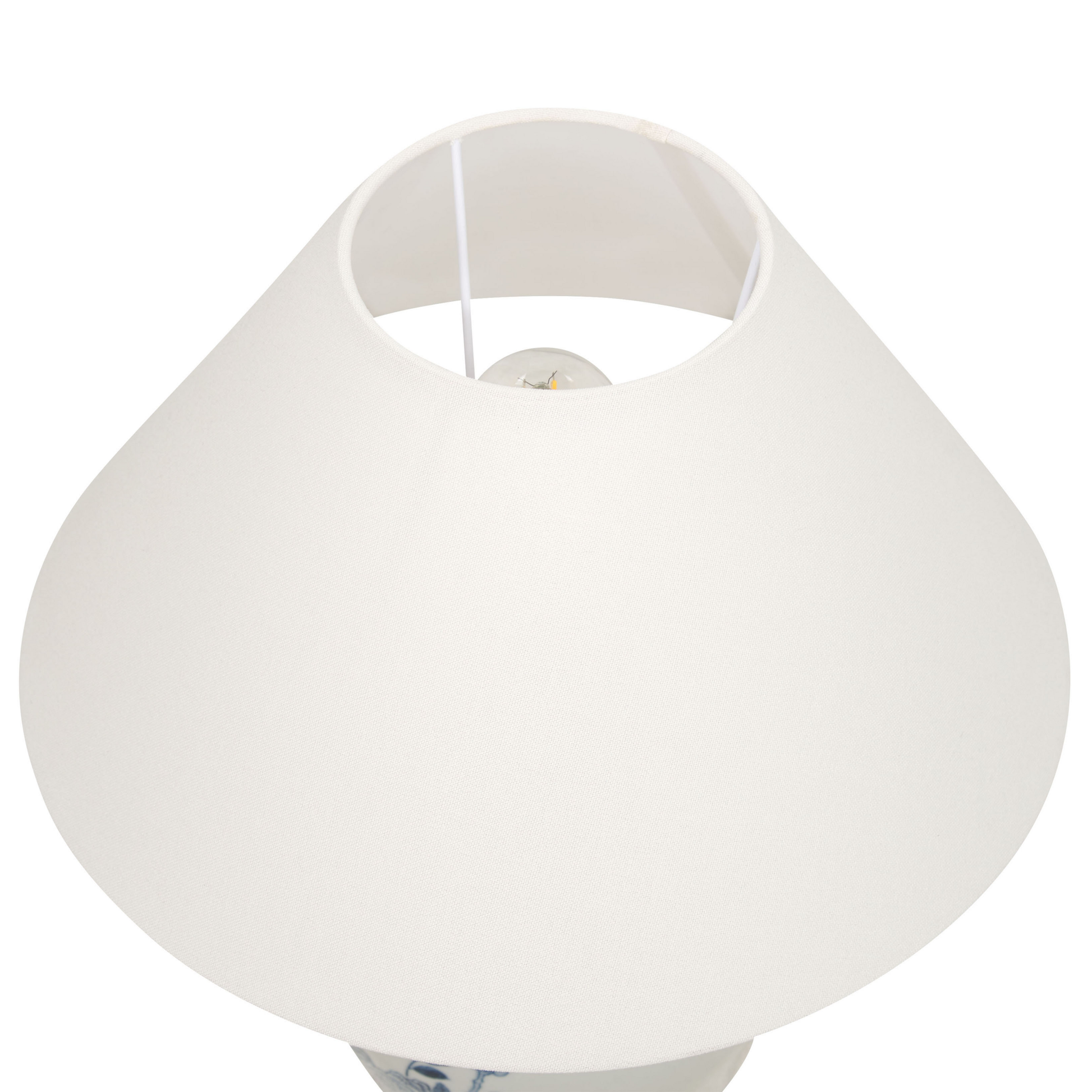 Gönnen Sie sich zeitlose Eleganz mit dieser formschönen Tischlampe. Handbemalt mit einem charmanten Muster, verbindet sie nahtlos traditionellen Charme mit einem modernen Touch und verschönert mühelos jedes Interieur. Dank langem, schwarzem Kabel mit Schalter kann die Keramik-Leuchte fast überall angeschlossen werden. Der Sockel aus hochwertigem Porzellan garantiert dauerhafte Qualität, und der Lampenschirm aus weichen Leinen verbreitet einen sanften Lichtschein. So ist diese Tischleuchte die perfekte Ergänzung für jeden Nacht-, Beistell- oder Couchtisch. Material: Porzellan. Zusätzliches Material: Leinen. Material Zusammensetzung: 100% Leinen Gewicht: 3 Montage: Benötigt keine Montage Das Angebot beinhaltet: 1 x Tischleuchte, Nicht im Lieferumfang enthalten: Leuchtmittel Höhe: 55 zusätzliche Information: Diese Leuchte ist geeignet für Leuchtmittel der Energieklassen A bis G auf einer Skala von A (sehr effizient) bis G (weniger effizient). Geeignet für: LED Leuchtmittel, Eco-Halogen Leuchtmittel, Energiesparleuchtmittel., Die Stromkabel dürfen nur von einem qualifizierten Elektriker angepasst werden. Breite: 40 Tiefe: 40 Art: Tischleuchte Stil: Klassisch Allgemeine Farbe: Weiss Schatten: Cremeweiss Hauptmaterial: Porzellan Fassung: Max. 60 W IP Protection Code: IP 20