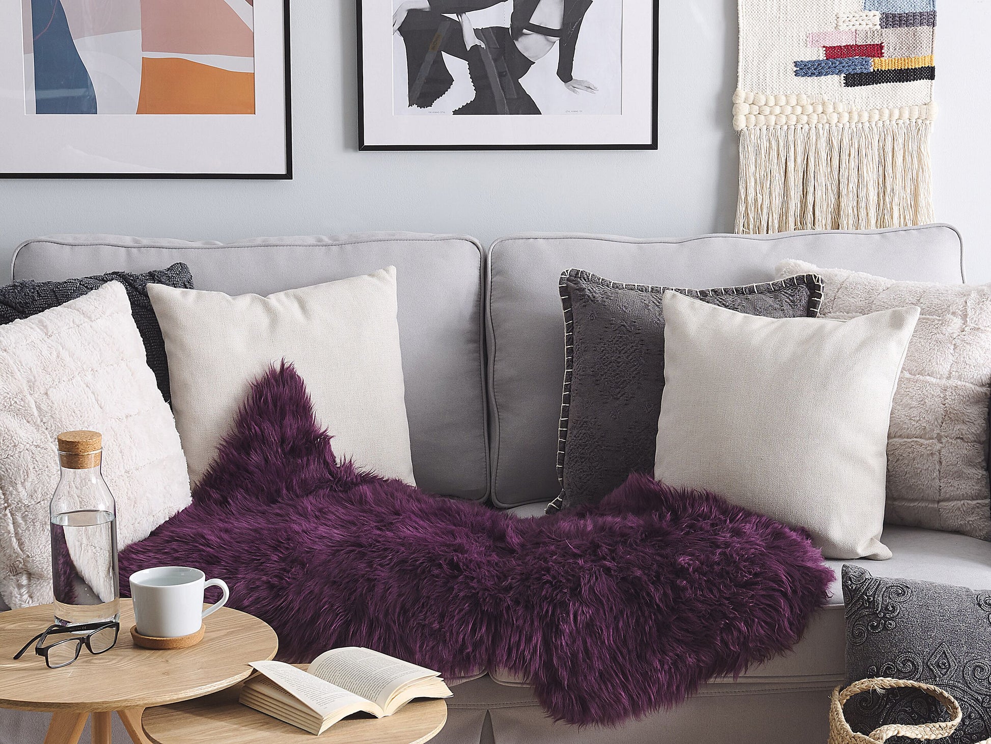 Dieser exklusive, flauschig weiche Teppich aus echtem Schaffell macht jeden Raum zur gemütlichen Kuschel-Oase. Er passt hervorragend zu romantischen, klassischen aber auch zu modernen Einrichtungsstilen und macht sowohl auf dem Fussboden wie auch als Dekoelement an der Wand oder als Überwurfdecke für Stuhl und Couch eine schöne Figur.   Material: Schaffell. Material Zusammensetzung: 100% Echtleder Gewicht: 1 Montage: Benötigt keine Montage Das Angebot beinhaltet: 1 x Schaffell zusätzliche Information: Der Artikel könnte Haare verlieren. Dies ist ein normaler Vorgang und stellt keinen Qualitätsmangel des Produkts dar., Da  Kuhfell ein Naturprodukt ist, können Muster- bzw. Grössendifferenzen auftreten. Farb- und Strukturunterschiede, Narben, Falten und sonstige Naturmerkmale sind Echtheitsbeweise und keine zur Reklamation berechtigende Fehler., Der Artikel benötigt einige Zeit, bis er seinen ursprünglichen Zustand erreicht hat – daher sollte er so schnell wie möglich ausgerollt werden und innerhalb von 72 Stunden seine vollständige Grösse wieder erreichen. Für einen optimalen Effekt sollte man die Teppichkanten mit schweren Gegenständen fixieren., Um die Qualität und Langlebigkeit des Materials zu erhalten, sollten Sie den Teppich nicht in stark beanspruchten Bereichen platzieren. Gestalten: Unregelmässig Breite: 65 Länge: 100/110 Art: Teppich Stil: Klassisch Allgemeine Farbe: Violett Schatten: Purpur Muster: Ohne Muster Hauptmaterial: Schaffell