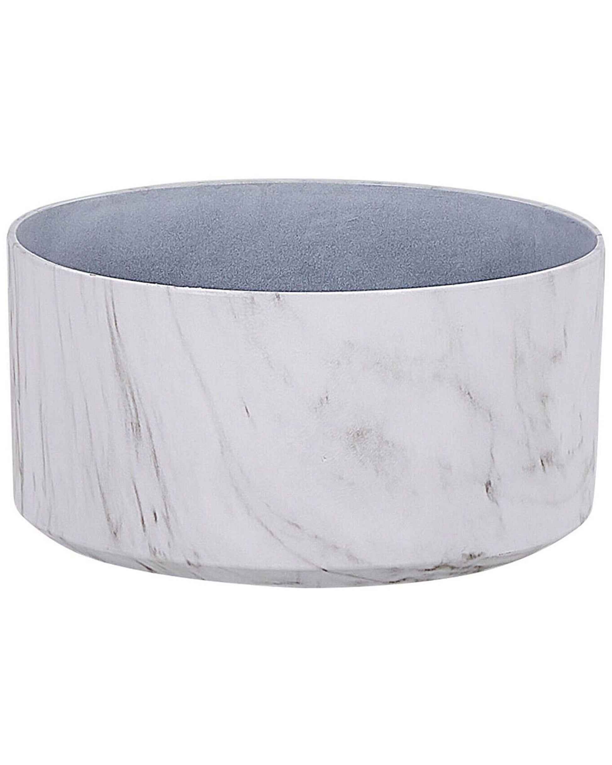 Die abgerundete, elegante Form und der besondere Marmor Look dieses Blumenbehälters fügt sich harmonisch in jeden Aussen- und Innenbereich ein. Als Gruppe angeordnet, sieht die Schale edel aus und lässt das Herz jedes Natur- und Pflanzenliebhabers höher schlagen. Dieses Gefäss lässt sich einfach säubern, hat ein leichtes Gewicht, eine lange Lebensdauer und kann dabei auch sehr hohen oder besonders niedrigen Temperaturen trotzen.  Material: Lehm-Faser-Mischung. Gewicht: 1 Montage: Benötigt keine Montage Das Angebot beinhaltet: 1 x Blumenkübel Höhe: 22 zusätzliche Information: Bitte beachten Sie, dass Pflanzgefässe aus weissem Steingut einem natürlichen Alterungsprozess unterliegen und sich im Laufe der Zeit durch Witterungseinflüsse, Feuchtigkeit oder Chemikalien verfärben können. Bei Bedarf kann der Pflanztopf mit einem neuen Farbton aufgefrischt werden. Gestalten: Rund Breite: 43 Tiefe: 43 Art: Blumenkübel Stil: Skandinavisch Allgemeine Farbe: Weiss Hauptmaterial: Lehm-Faser-Mischung