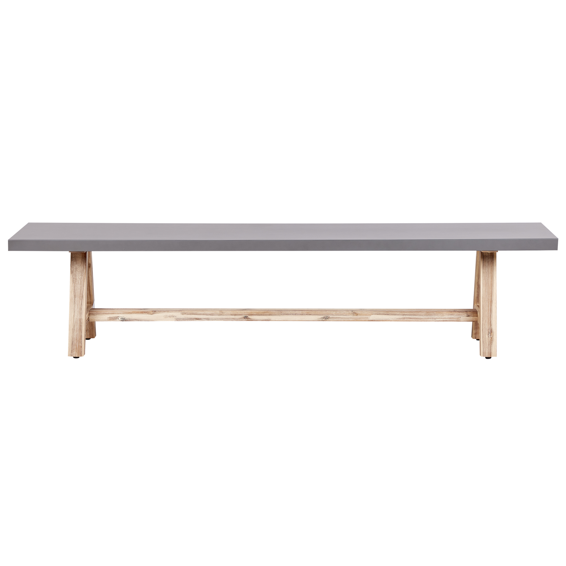 Das Design dieser Gartenbank besteht aus einer glatten Sitzfläche aus massivem Beton und stabilen Beinen aus Akazienholz. Die Kombination aus grauem Beton und hellen Holztönen sorgt für einen modernen Look, der sich für verschiedene Aussenbereiche eignet. Die Bank ist auf Langlebigkeit und Komfort ausgelegt und bietet eine stilvolle und funktionelle Sitzgelegenheit, an der Sie viele Jahre Freude haben werden. Material: Faserzement. Zusätzliches Material: Akazienholz. Gewicht: 30 Kapazität: 3 Personen Montage: Nicht montiert Holzart: Acacia mangium Holzursprung: Vietnam Beine Höhe: 41 Sitzhöhe: 45 Das Angebot beinhaltet: 1 x Bank Sitzfläche: 200x40 Höhe: 45 zusätzliche Information: Holz ist ein Naturprodukt. Farb- und Strukturunterschiede, Narben, Falten und sonstige Naturmerkmale sind Echtheitsbeweise und keine zur Reklamation berechtigende Fehler., Die Möbel können abhängig von der Luftfeuchtigkeit mit der Zeit Porenlöcher, feine Risse und Unregelmässigkeiten in der Färbung aufweisen, dies liegt in der Natur des Materials und macht den eigentlichen Charme des Möbels aus. Dies hat keinen Einfluss auf die Stabilität, sondern es ist eine reine optische Veränderung. Breite: 200 Tiefe: 40 Art: Gartenbank Stil: Industriell Allgemeine Farbe: Grau Hauptmaterial: Faserzement