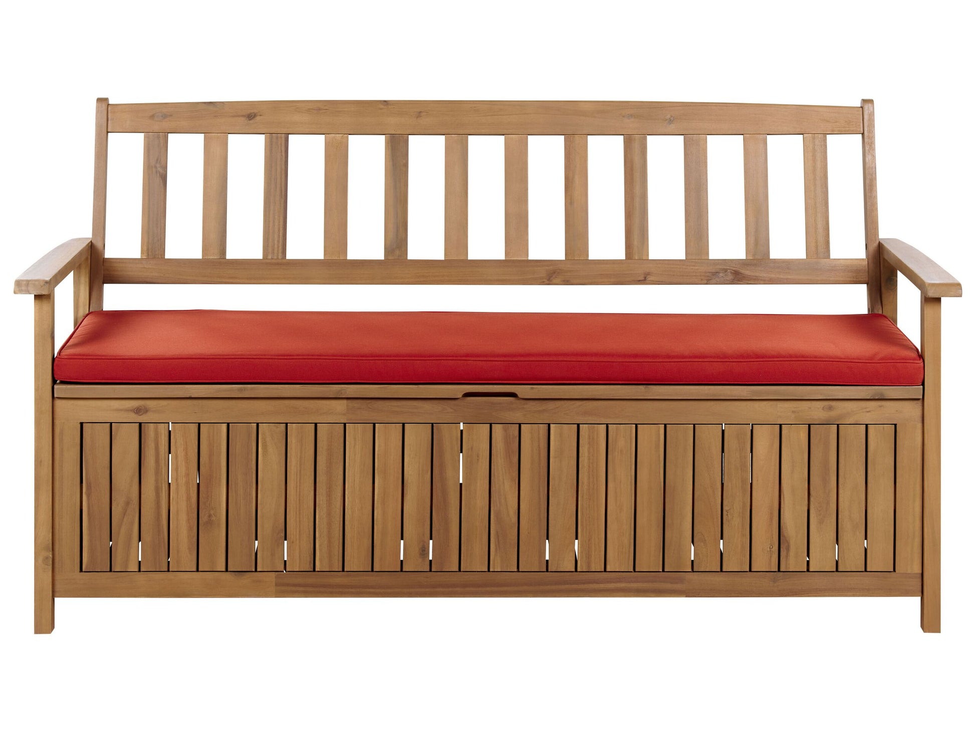 Gartenbank mit Auflage SOVANA 160 cm mit Stauraum Akazienholz Rot