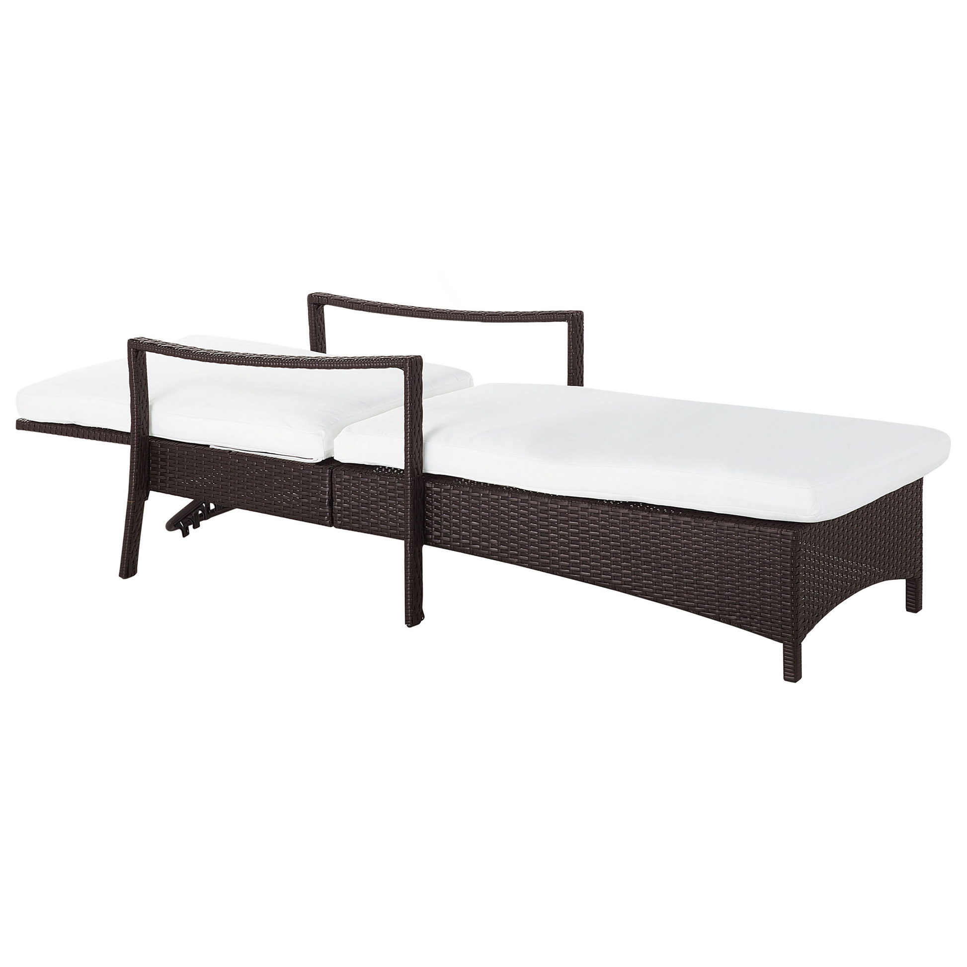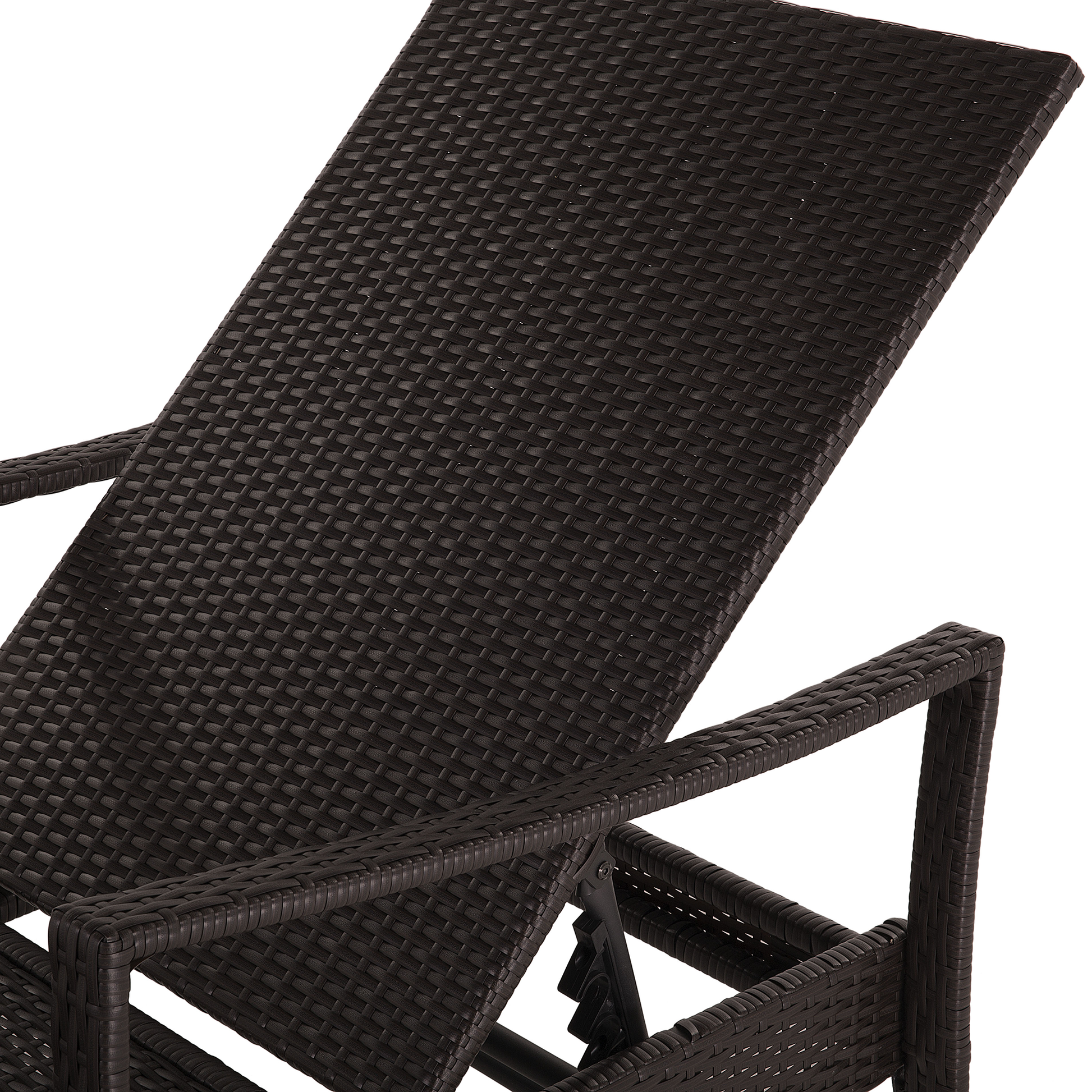 Unsere Gartenliege ist durch das strapazierfähige Polyrattan-Geflecht und seinen stabilen Aufbau aus Aluminium, besonders gut geeignet für den Einsatz im Aussenbereich und ist dabei besonders pflegeleicht. Das Polyrattangeflecht ist sehr widerstandsfähig, UV-beständig und ist für Temperaturen von -20 Grad bis +50 Grad geeignet. Die Auflage ist flüssigkeitsabweisend. Der Aluminiumunterbau sorgt für allerhöchste Beweglichkeit der Liege und durch das dezente und elegante Design, lässt sich die Liege überall gut aufstellen. Sie ist auch höchst komfortabel, dank ihrer verstellbaren Rückenlehne, können Sie nun entspannen und ein Buch lesen. Material: PE Rattan. Zusätzliches Material: Polyester, Aluminium. Material Zusammensetzung: 100% Polyester Gewicht: 14 Montage: Nicht montiert Gewichtskapazität: 160 Kissen Abmessungen: 189x61x6 Beine Höhe: 8 Polsterstärke: 6 Sitzhöhe: 37 Das Angebot beinhaltet: 1 x Sitzkissen, 1 x Liege Höhe: 26-96 zusätzliche Information: Bitte beachten Sie, dass das Produkt wetterempfindlich ist und bei Nichtgebrauch im Inneren aufbewahrt werden sollte. Breite: 63 Tiefe: 158 Art: Liege Stil: Klassisch Allgemeine Farbe: Braun Schatten: Dunkelbraun Hauptmaterial: PE Rattan