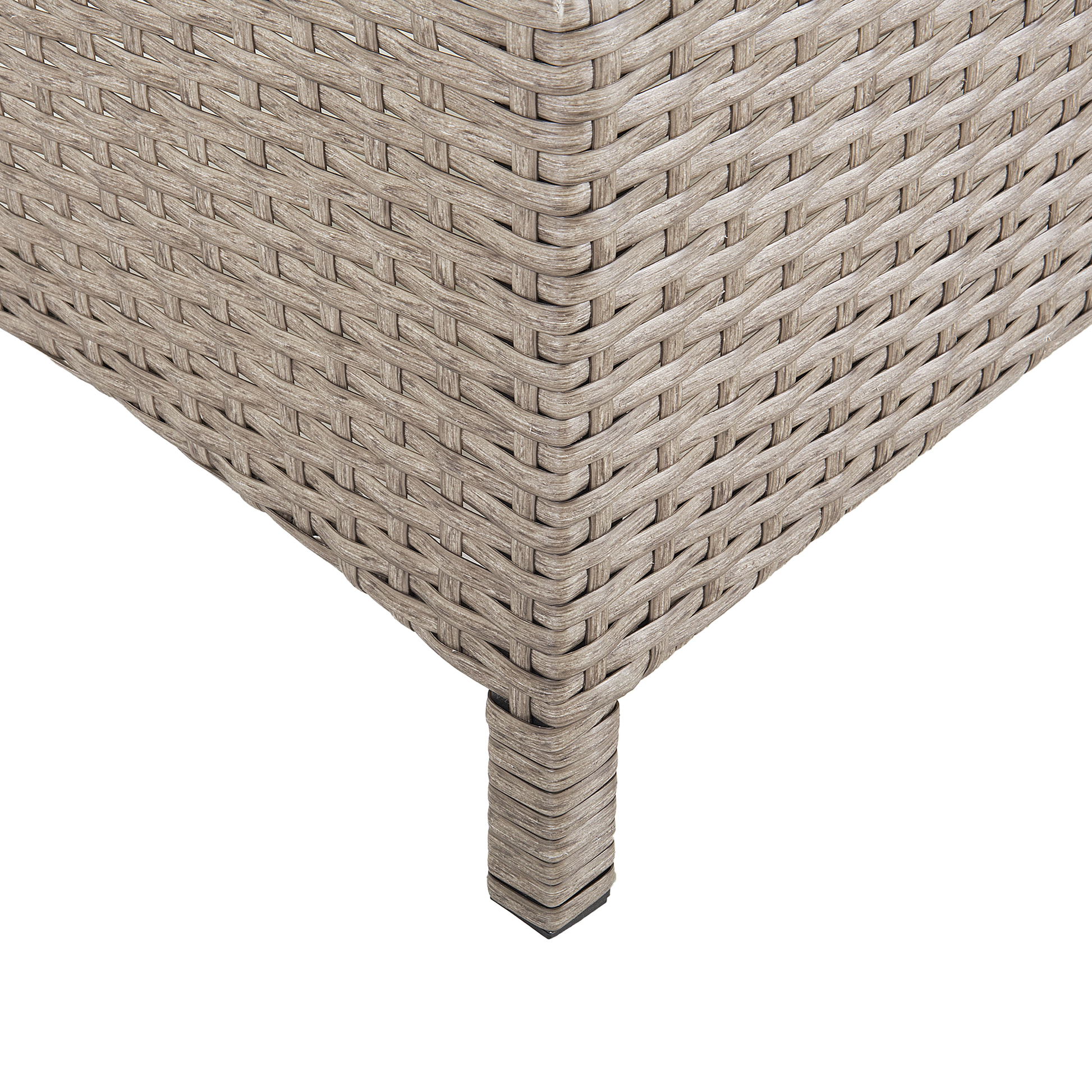 Descrizione: Unsere Gartenliege ist durch das strapazierfähige Polyrattan-Geflecht und seinen stabilen Aufbau aus Aluminium, besonders gut geeignet für den Einsatz im Aussenbereich und ist dabei besonders pflegeleicht. Das Polyrattangeflecht ist sehr widerstandsfähig, UV-beständig und ist für Temperaturen von -20 Grad bis +50 Grad geeignet. Die Auflage ist flüssigkeitsabweisend. Der Aluminiumunterbau sorgt für allerhöchste Beweglichkeit der Liege und durch das dezente und elegante Design, lässt sich die Liege überall gut aufstellen. Sie ist auch höchst komfortabel, dank ihrer verstellbaren Rückenlehne, können Sie nun entspannen und ein Buch lesen. Material: PE Rattan. Zusätzliches Material: Polyester, Aluminium. Material Zusammensetzung: 100% Polyester Gewicht: 14 Montage: Nicht montiert Gewichtskapazität: 160 Kissen Abmessungen: 189x61x6 Beine Höhe: 8 Polsterstärke: 6 Sitzhöhe: 37 Das Angebot beinhaltet: 1 x Sitzkissen, 1 x Liege Höhe: 26-96 zusätzliche Information: Bitte beachten Sie, dass das Produkt wetterempfindlich ist und bei Nichtgebrauch im Inneren aufbewahrt werden sollte. Breite: 63 Tiefe: 158 Art: Liege Stil: Klassisch Allgemeine Farbe: Grau Schatten: Taupe Hauptmaterial: PE Rattan