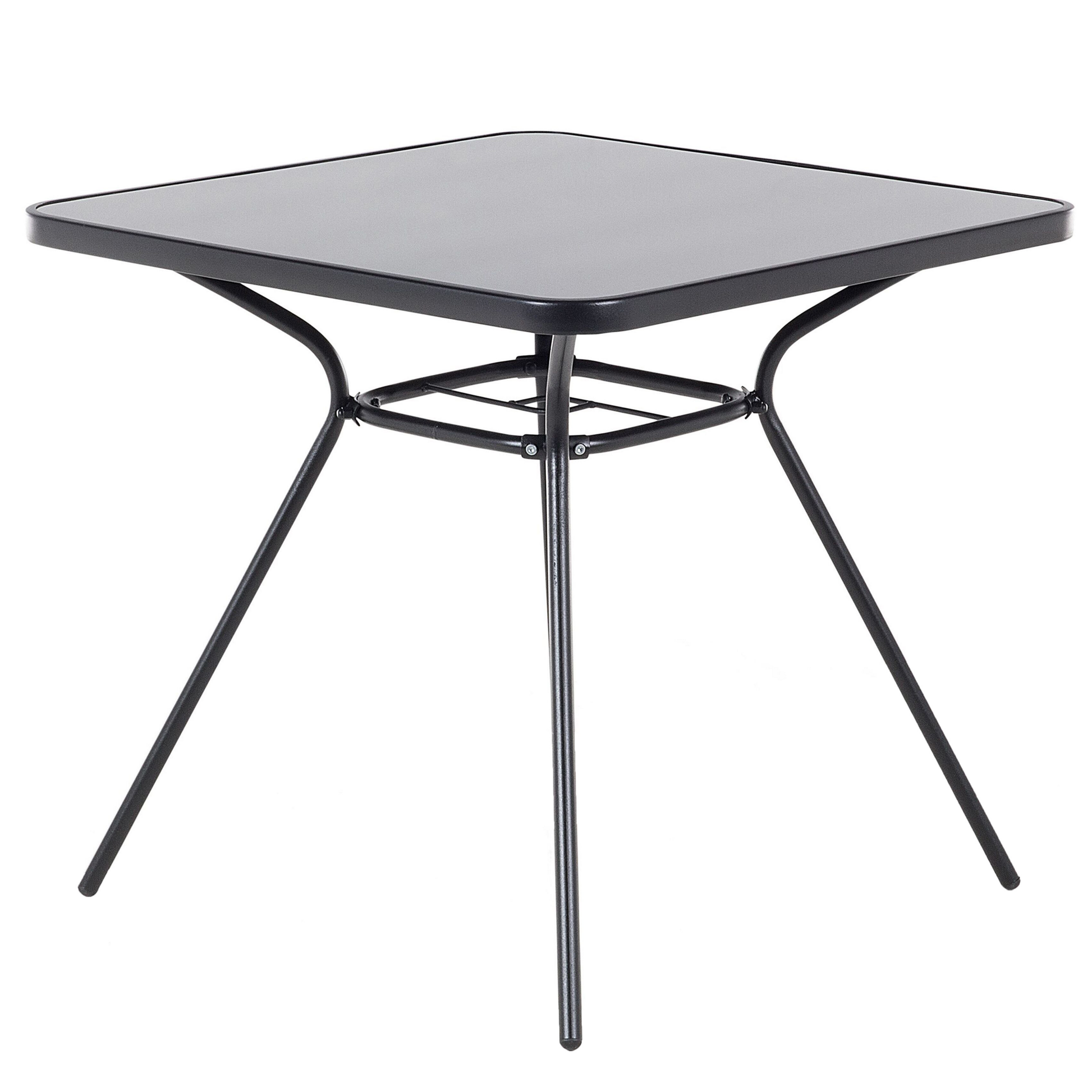 Dieses praktische Gartenset ist aus pulverbeschichtetem, schwarzem Stahl gefertigt, die handlichen Klappstühle verfügen über eine robuste Bespannung aus schwarzem Textilene, und die stabile Tischplatte besteht aus schwarzem Sicherheitsglas. Das moderne Gartenset bietet eine bequeme Sitzgelegenheit für Garten, Terrasse und Balkon und lässt sich schnell heran holen, wenn Sie bei einer grösseren Runde noch zusätzliche Sitzmöglichkeiten benötigen. Es ist platzsparend zusammenklappbar und kann somit auch wunderbar mit in den Urlaub, an den Strand oder zu einem Picknick. Material: Stahl. Zusätzliches Material: Sicherheitsglas, Textil. Material Zusammensetzung: 100% Textil Gewicht: 31 Kapazität: 4 Personen Montage: Teilweise montiert Gesamtabmessungen: 80x80x72 Tischabmessungen: 80x80x72 Stuhl Abmessungen: 48x66x90 Sitzhöhe: 38 Das Angebot beinhaltet: 1 x Tisch, 4 x Stühle Art: Garten-Essgruppe für 4 Personen Stil: Industriell Allgemeine Farbe: Schwarz Hauptmaterial: Stahl