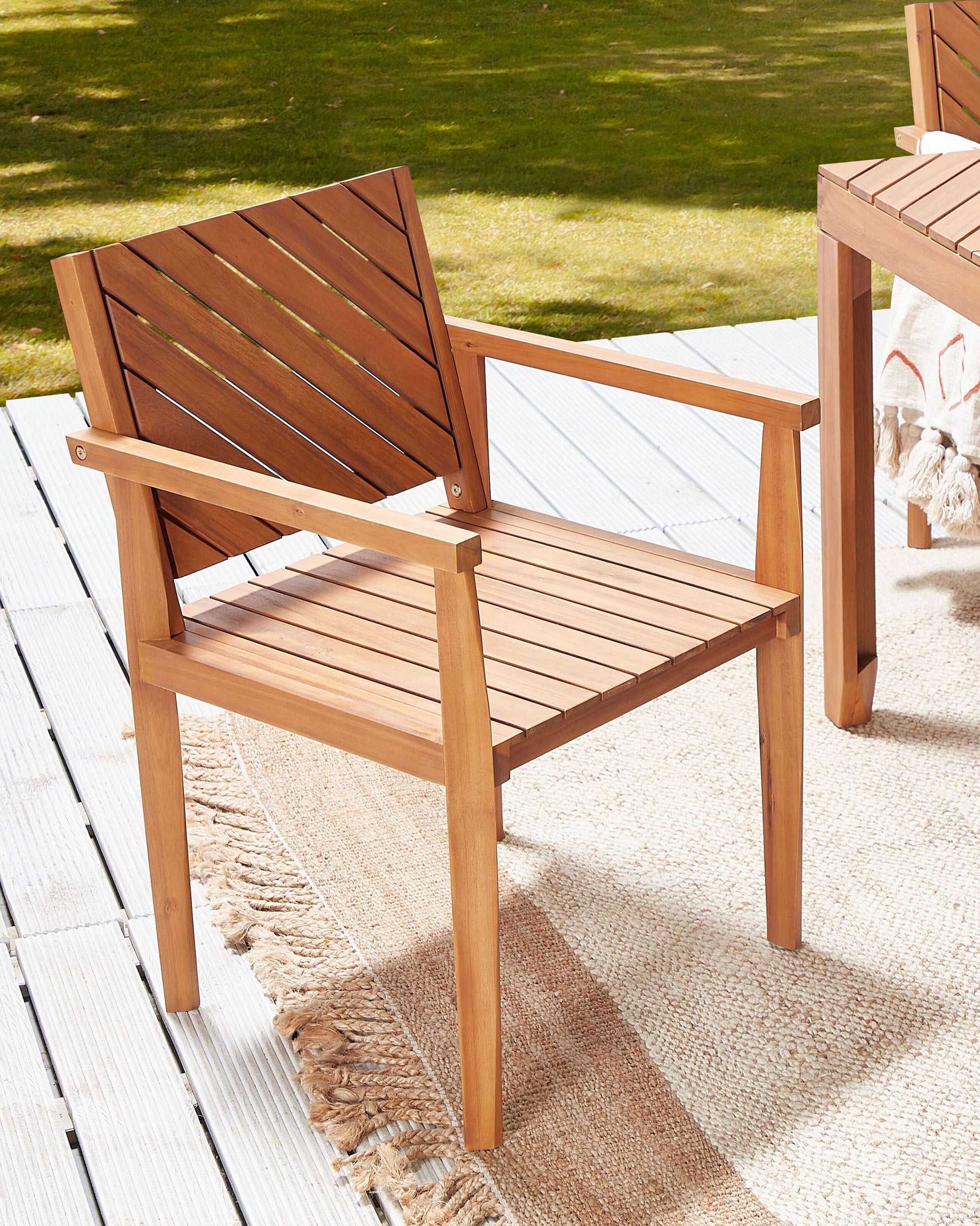 Suchen Sie nach einem passenden Stuhl für Ihren Garten oder Ihre Terrasse? Dieser Holzstuhl im traditionellen Stil wird sich dazu bestens eignen. Er ist aus hochwertigem Akazienholz gefertigt, das sich durch seine Langlebigkeit und seinen Charme auszeichnet und dabei auch ideal für jeden Aussen- oder Innenbereich ist. Dieses Hartholz besticht mit seiner natürlichen Schönheit und vermittelt ein Freizeitwohnen auf hohem Niveau. Das ergonomische Design des Balkonstuhls garantiert Ihnen eine entspannte Sitzposition bei allen Treffen im Freundes- oder Familienkreis sowie bei allen Ruhepausen unter freiem Himmel. Material: Akazienholz. Gewicht: 7 Montage: Nicht montiert Holzart: Acacia mangium Holzursprung: Vietnam Gewichtskapazität: 160 Sitzhöhe: 39 Das Angebot beinhaltet: 1 x Stuhl Sitzfläche: 45x48 Höhe: 82 Breite: 55 Tiefe: 40 Art: Gartenstuhl Stil: Klassisch Allgemeine Farbe: Heller Holzfarbton Hauptmaterial: Akazienholz