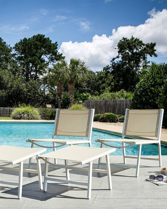 Gartenstuhl 2er Set MARCEDDI mit Fussstütze Metall Weiss / Beige