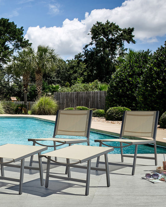 Gartenstuhl 2er Set MARCEDDI mit Fussstütze Metall Beige