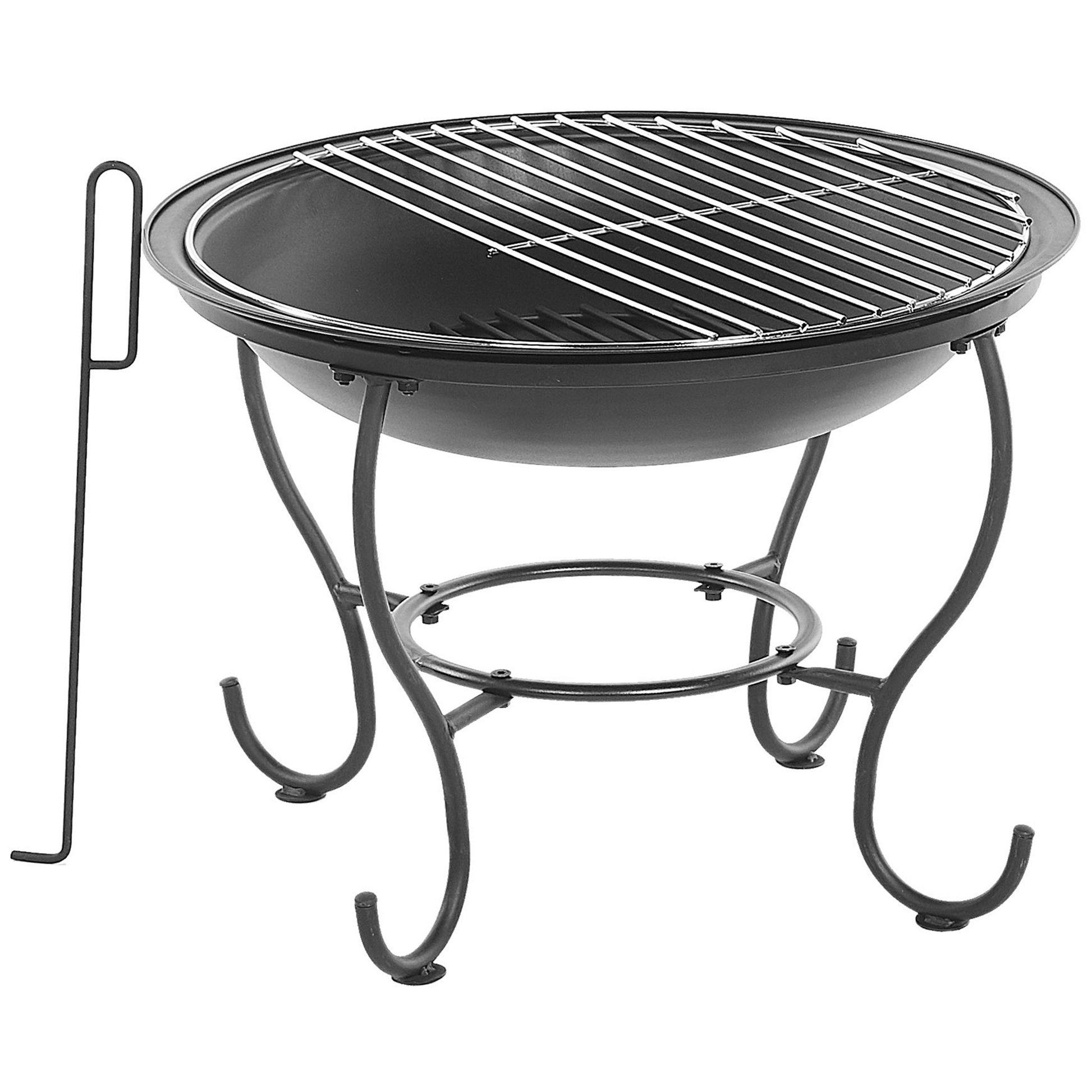 Descrizione: Dieses Modell wird zum Herzstück Ihres Aussenbereichs, das alle Ihre Gäste warm und gemütlich hält, wenn die Temperatur während der Gartenparty am Abend sinkt. Die praktische Schutzhaube schützt die nahe Umgebung vor Funkenflug und dank des Griffs ist sie auch leicht zu entfernen. Die brennenden Holzscheite kann man ganz einfach mit dem zusätzlichen Schürhaken verschieben. Wenn Sie mal keine Grillparty feiern, können Sie die Schüssel mit Eis füllen, damit im Sommer die Getränke auch für längere Zeit kühl gelagert und Griffbereit sind. Material: Stahl. Gewicht: 3 Montage: Nicht montiert Das Angebot beinhaltet: 1 x Feuerstelle, 1 x Holzrost, 1 x Brenneinsatz, 1 x Funkenschutzhaube, 1 x Grillrost, 1 x Schürhaken Höhe: 54 zusätzliche Information: Wenn die Feuerstelle nicht benutzt wird, sollte sie über den Winter im Innenbereich aufbewahrt werden um Frostschäden zu vermeiden. Breite: 51 Tiefe: 51 Art: Grill-Feuerstelle Allgemeine Farbe: Schwarz Hauptmaterial: Stahl Brennstoff: Holzkohle