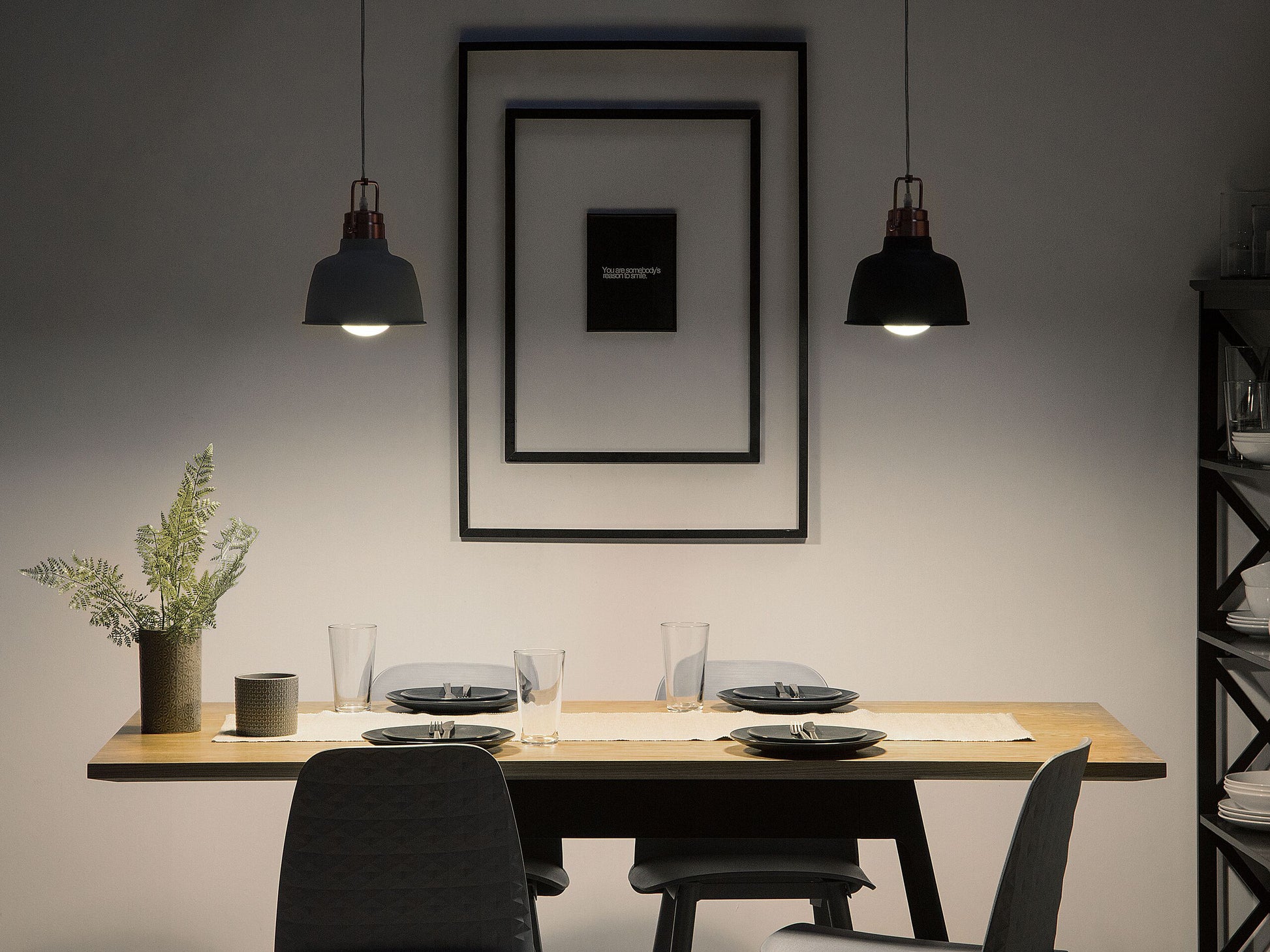 Die Pendelleuchte im angesagten industriellen Stil begeistert durch schlichte Schönheit. Der breite, runde Schirm der trendy Hängeleuchte aus robustem Metall bietet eine grossflächige Ausleuchtung in der Küche oder über Ihrem Esstisch. Die Kombination aus mattem Graphitgrau und glänzender Kupfer-Farbe erzielt eine besonders dekorative Wirkung. Material: Metall. Zusätzliches Material: PVC. Gewicht: 0.8 Montage: Erfordert Installation und Montage Das Angebot beinhaltet: 1 x Hängeleuchte, Nicht im Lieferumfang enthalten: Leuchtmittel Höhe: 179 zusätzliche Information: Diese Leuchte ist geeignet für Leuchtmittel der Energieklassen A bis G auf einer Skala von A (sehr effizient) bis G (weniger effizient). Geeignet für: LED Leuchtmittel, Eco-Halogen Leuchtmittel, Energiesparleuchtmittel., Die Stromkabel dürfen nur von einem qualifizierten Elektriker angepasst werden. Breite: 22 Tiefe: 22 Art: Hängelampe Stil: Modern Allgemeine Farbe: Grau Schatten: Graphitgrau Hauptmaterial: Metall Fassung: Max. 60 W IP Protection Code: IP 20
