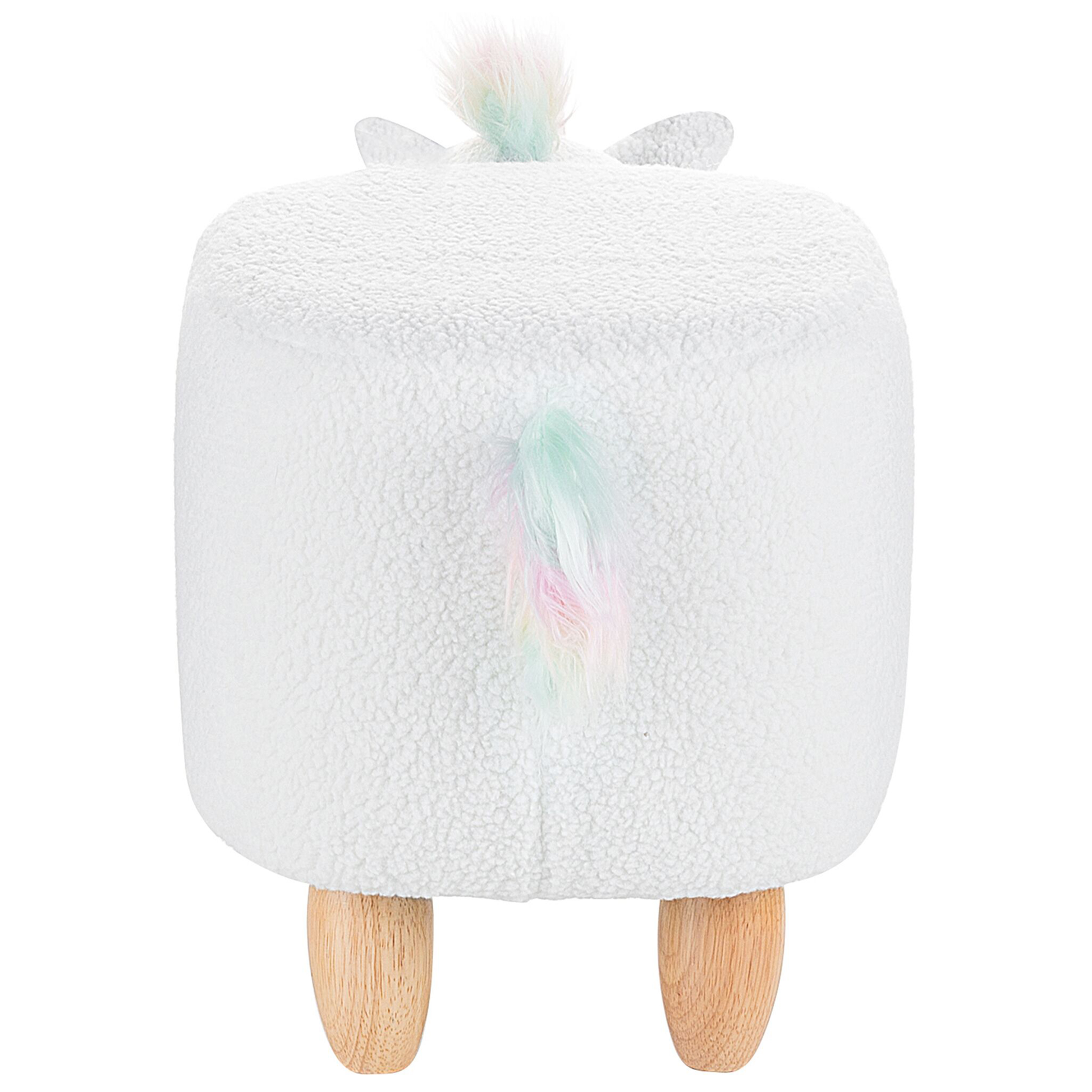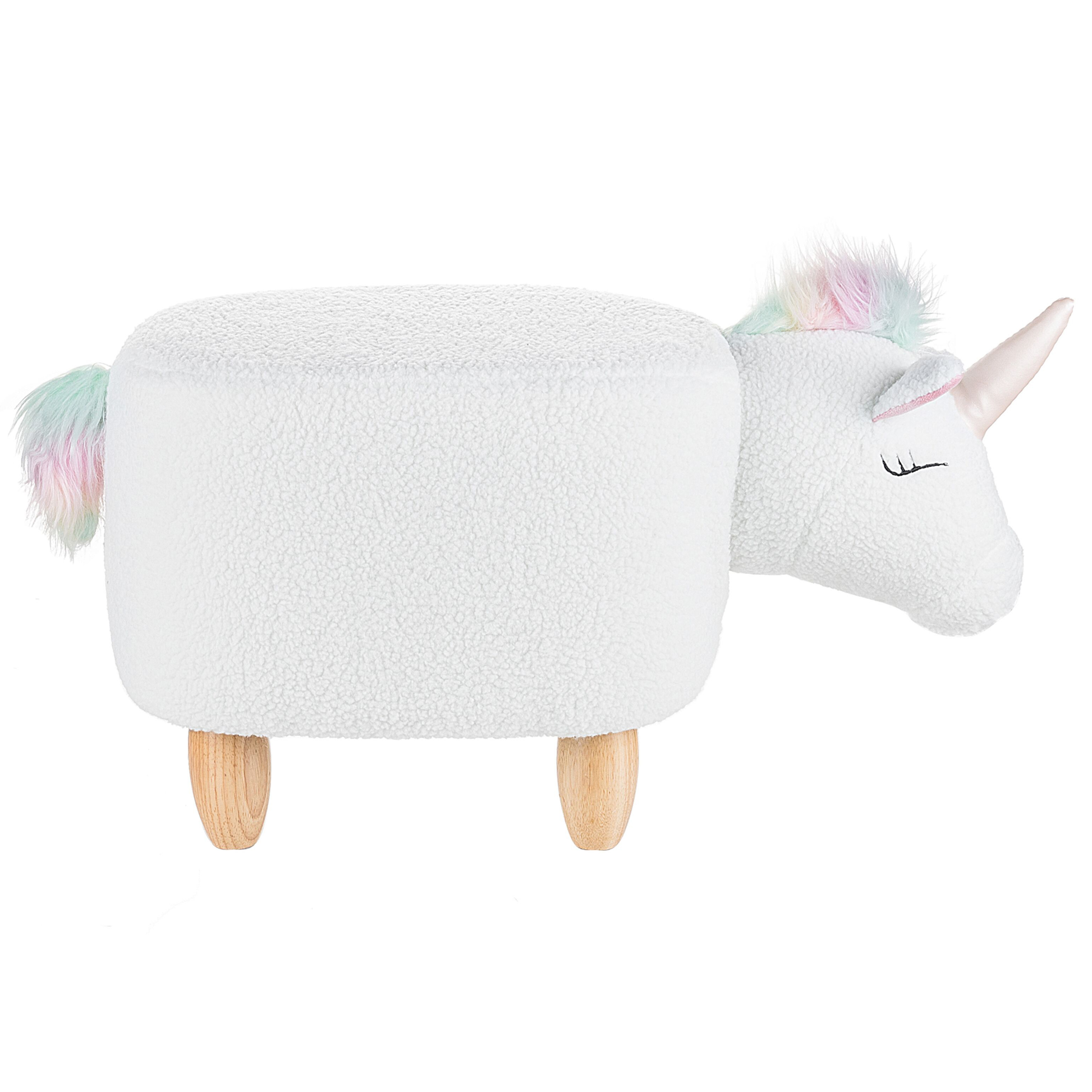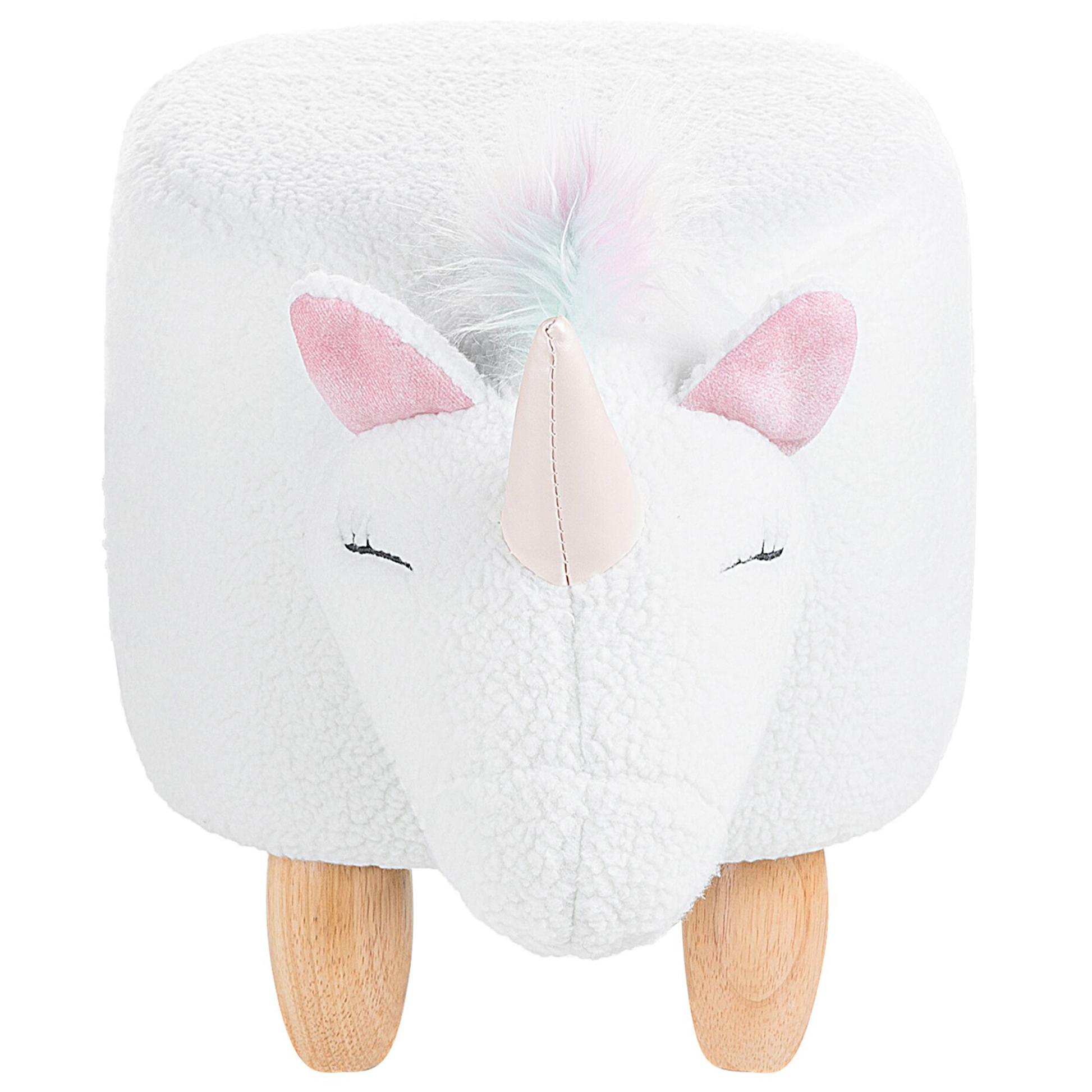 Hocker Felloptik / Gummibaumholz weiss Einhornform UNICORN